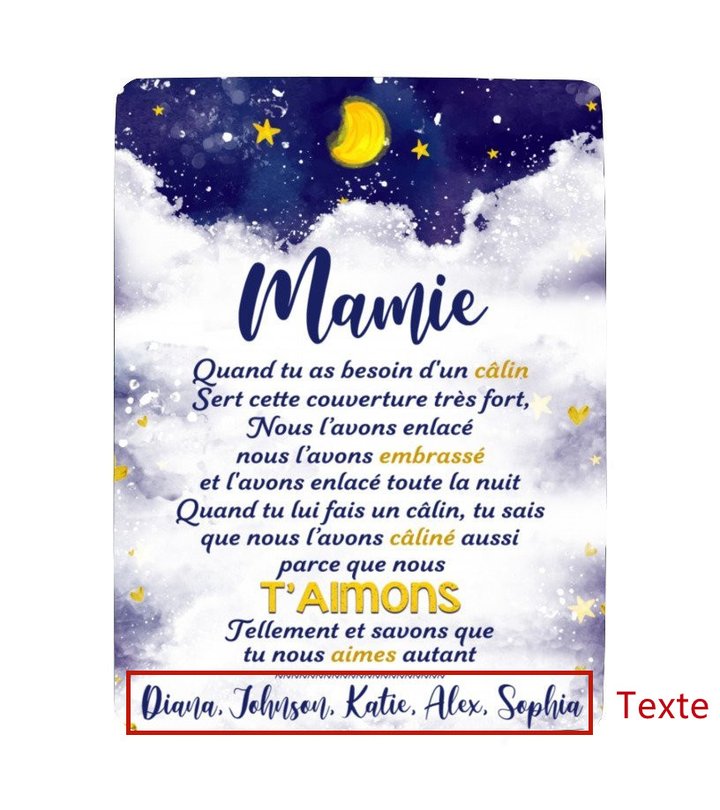 Mamie-Couverture plaids polaire Cadeau Fête des Grands-Mères texte Personnalisés