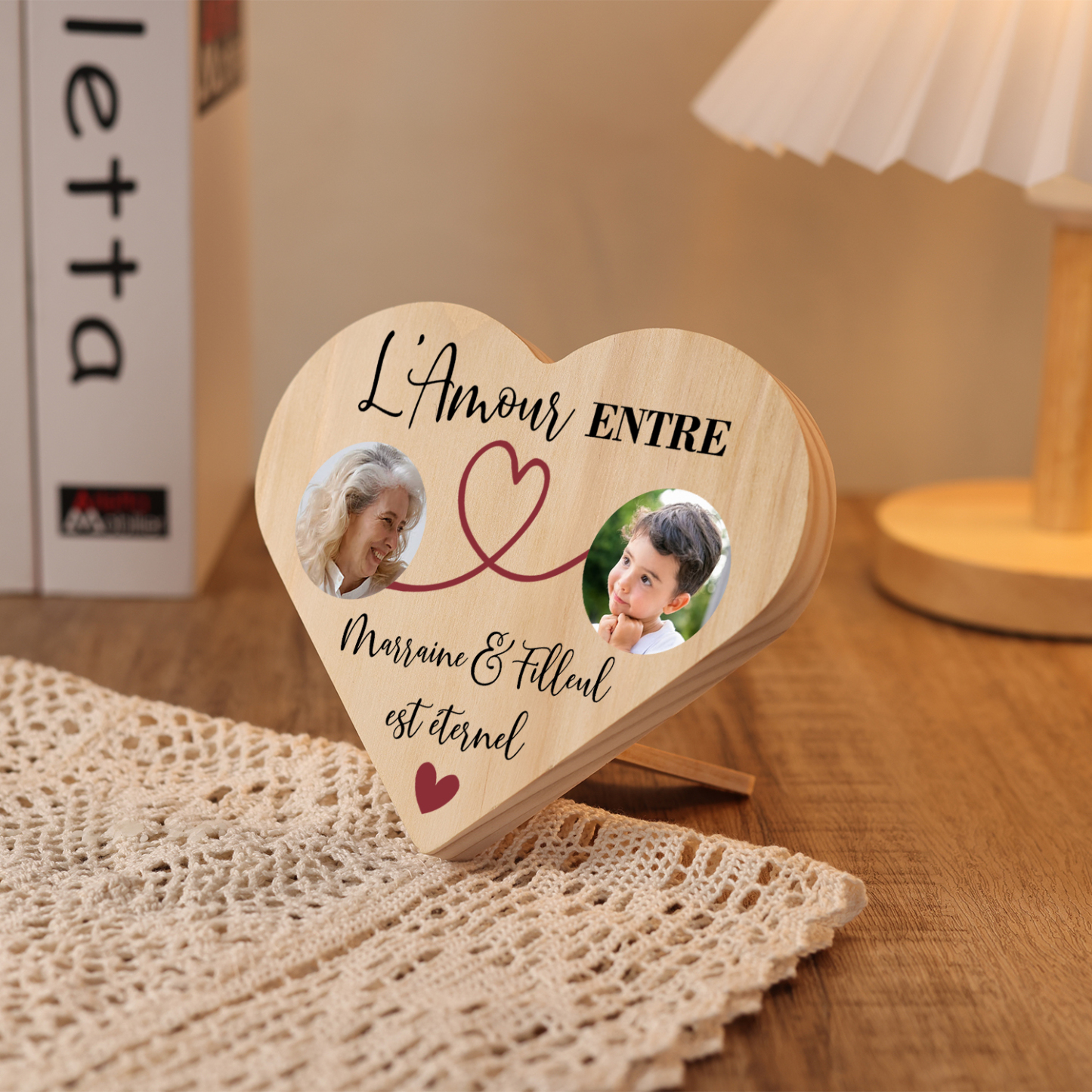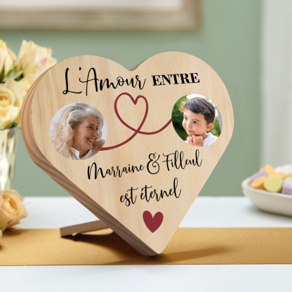 Marraine Et Filleul- Décoration En Bois Graver 2 Photos Personnalisées