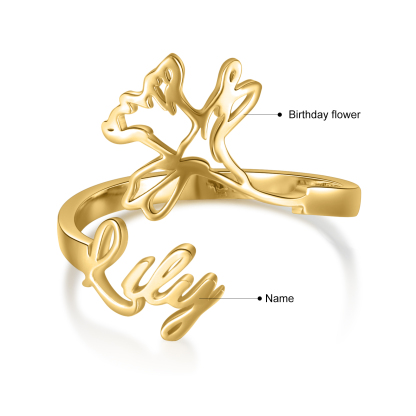 Mars Bague Ajustable prénom personnalisé fleur de naissance