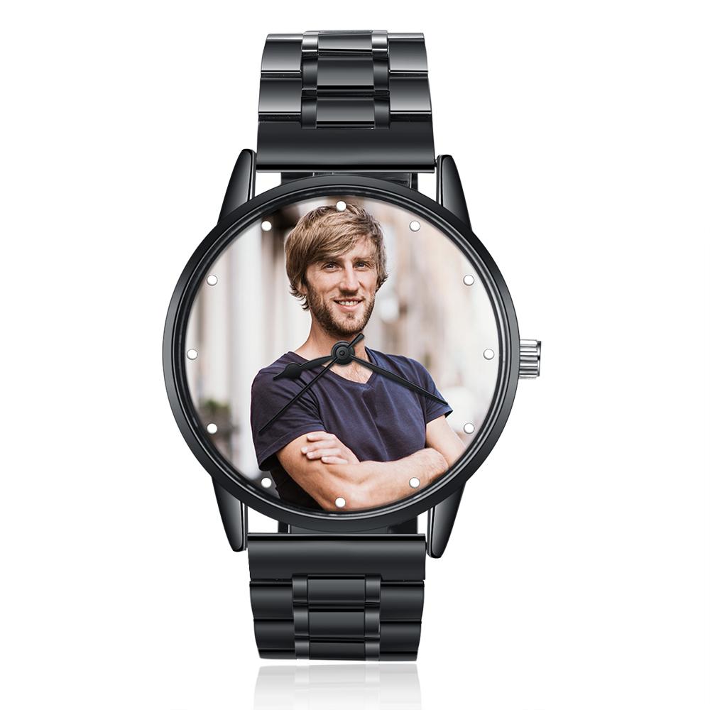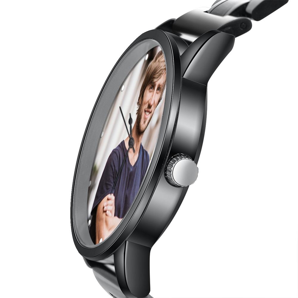 Montre Personnalisée Photo avec Gravure du prénom ou Message Bracelet en acier inoxydable