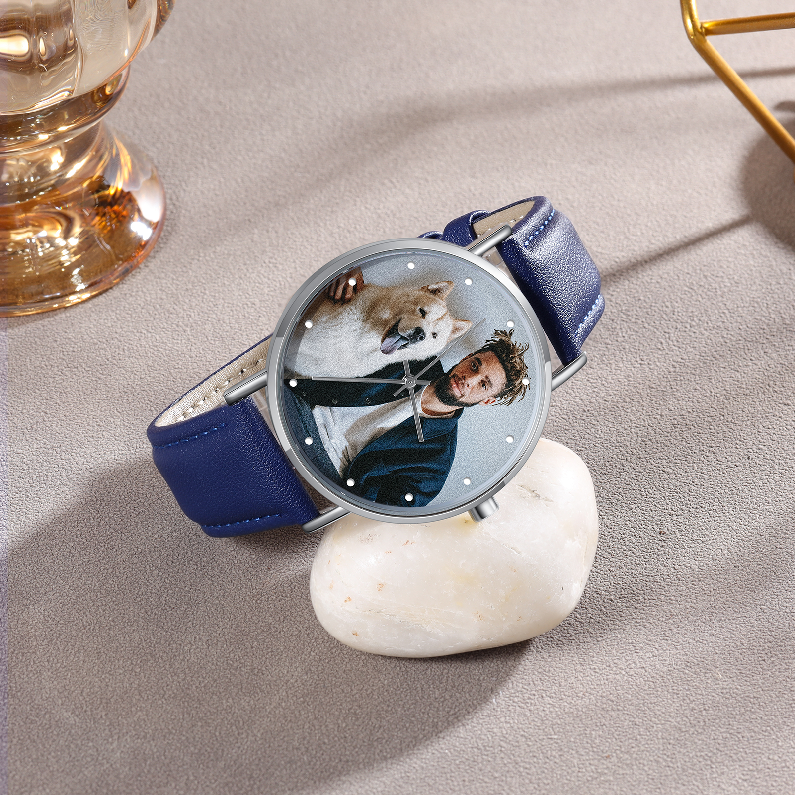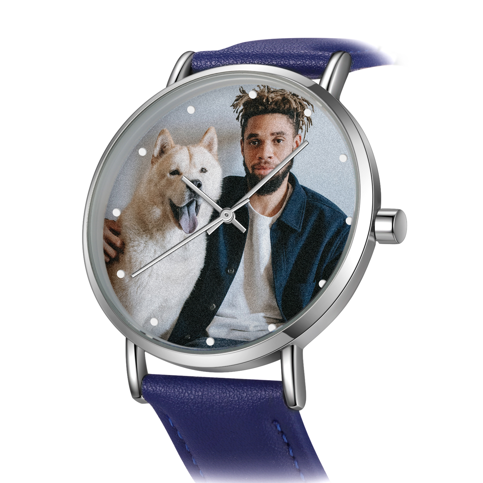 Montre Personnalisée Photo avec Gravure du prénom ou Message Bracelet en Cuir