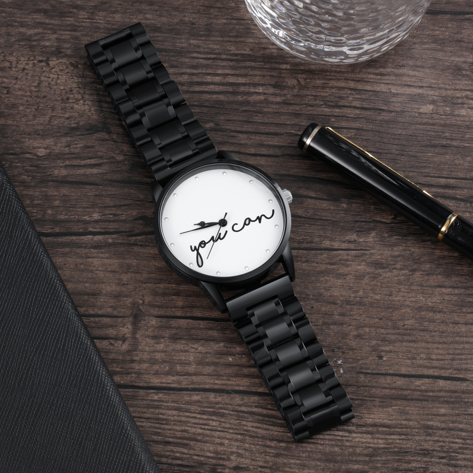 Montre Personnalisée Texte avec Gravure du prénom ou Message Bracelet en acier inoxydable