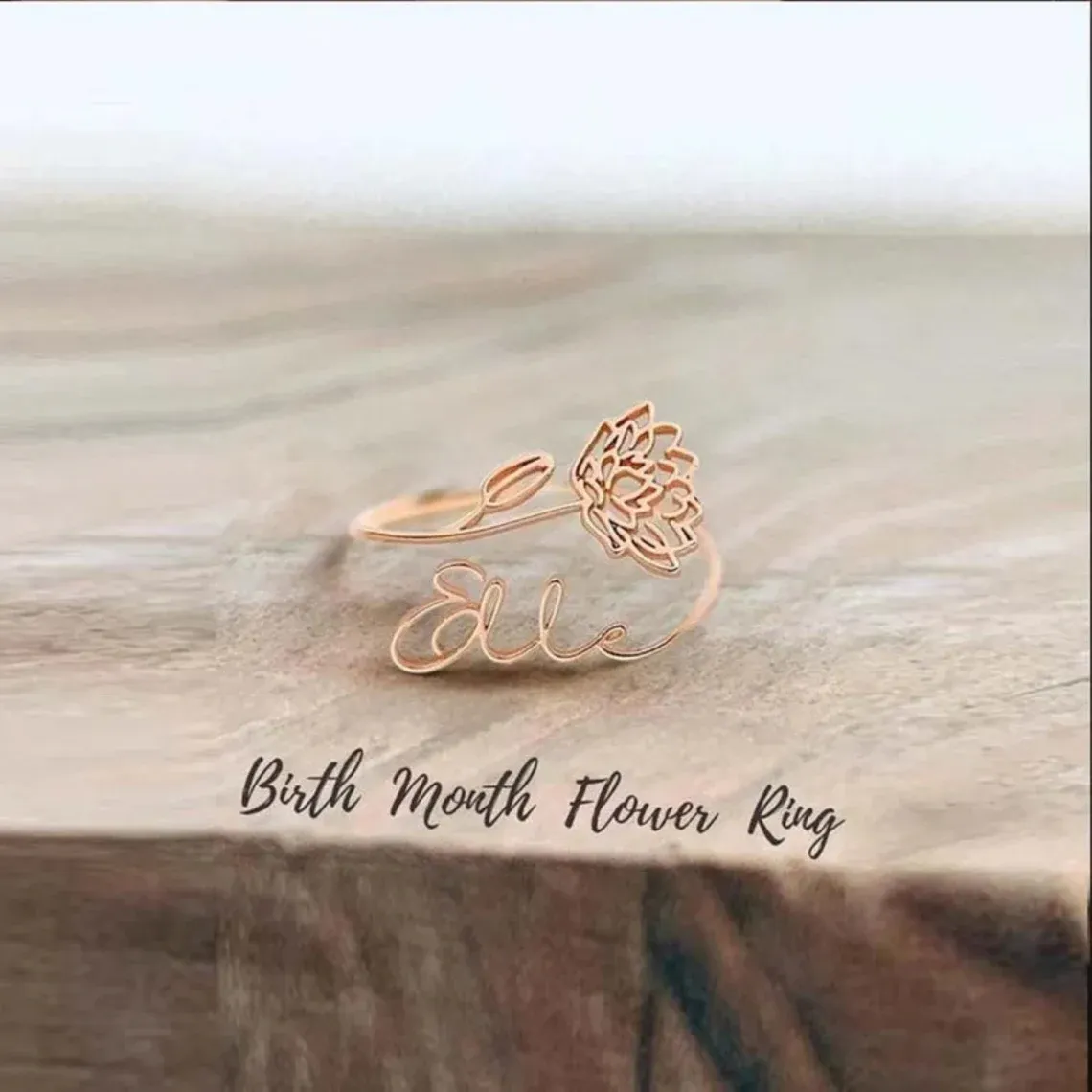 Novembre Bague Ajustable prénom personnalisé fleur de naissance
