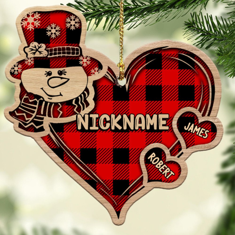 Ornement en bois 2 prénom personnalisé bonhomme de neige sur le coeur