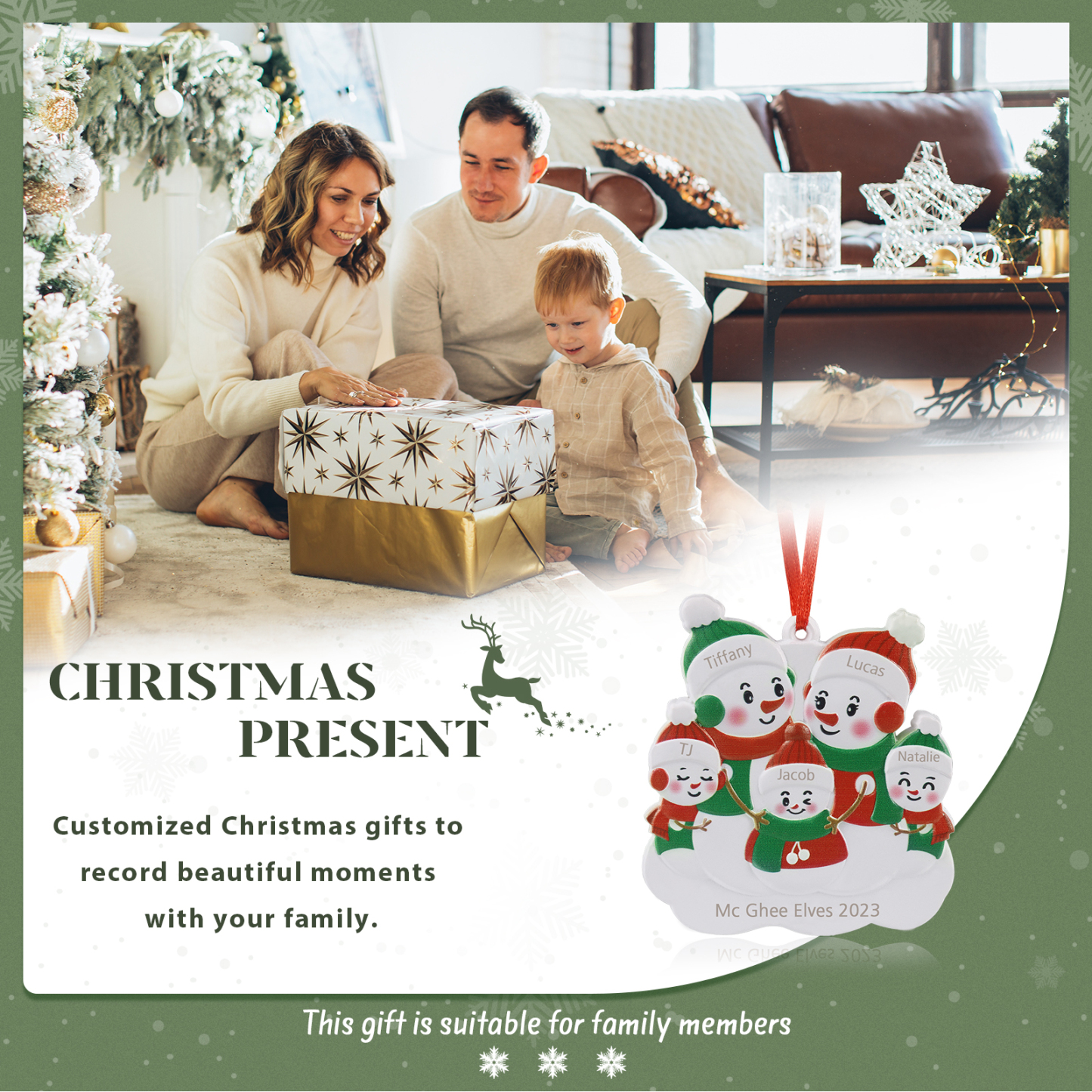 Décoration Sapin Noël 5 Prénoms Personnalisés avec Texte