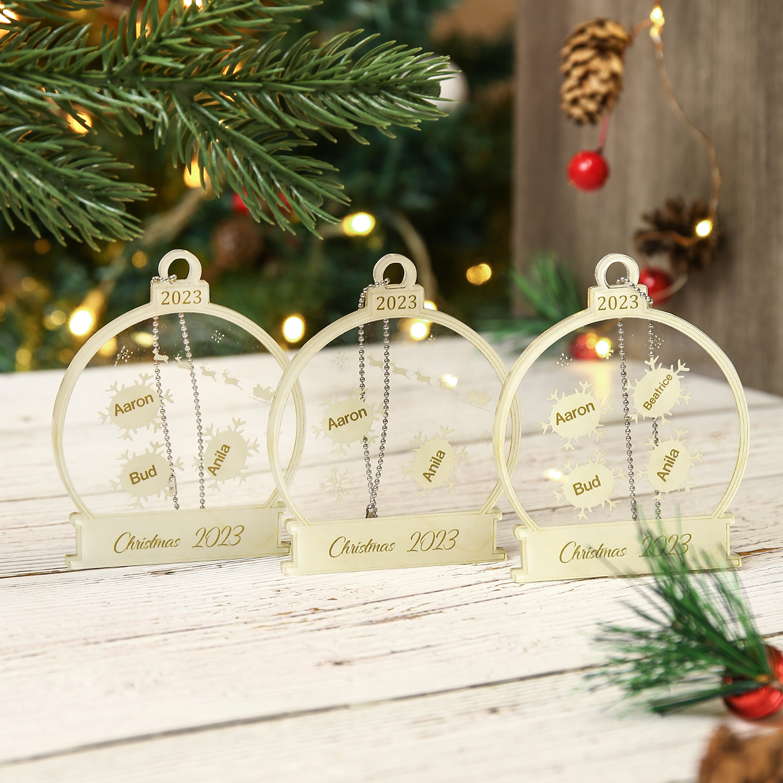 Décoration Sapin Noël flocon de neige 3 Prénoms et Texte Personnalisés avec Année