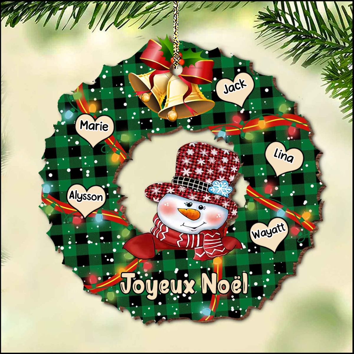 Décoration Sapin Noël bonhomme de neige 5 Prénoms Personnalisés