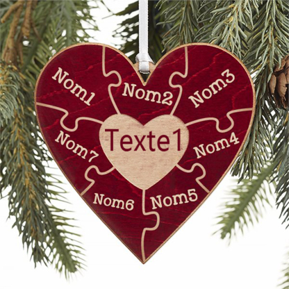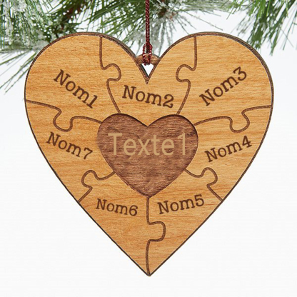 Ornements coeur puzzle famille 7 Prénoms Personnalisés avec texte