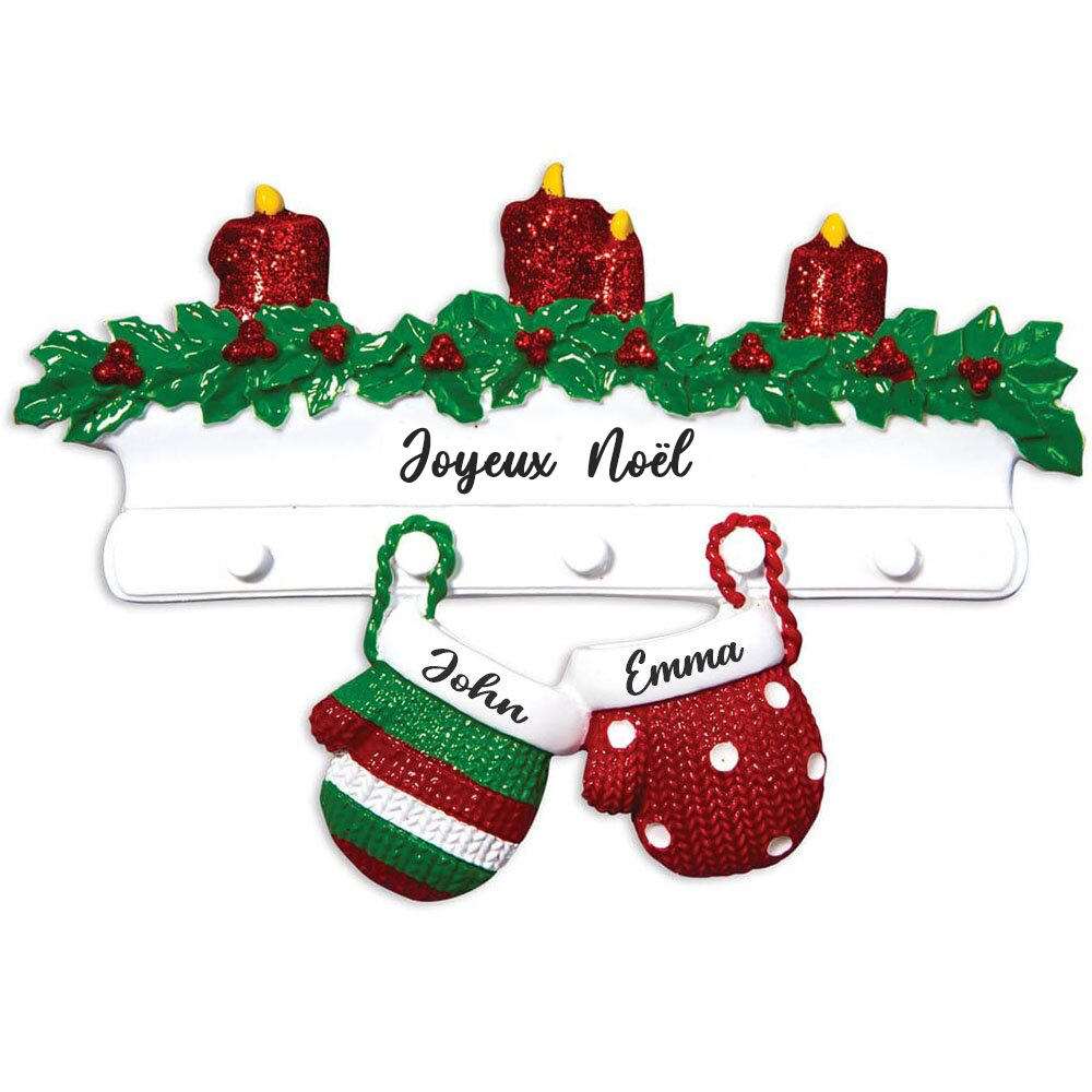Décoration Sapin Noël Gants de Noël 2 Prénoms Personnalisés avec texte