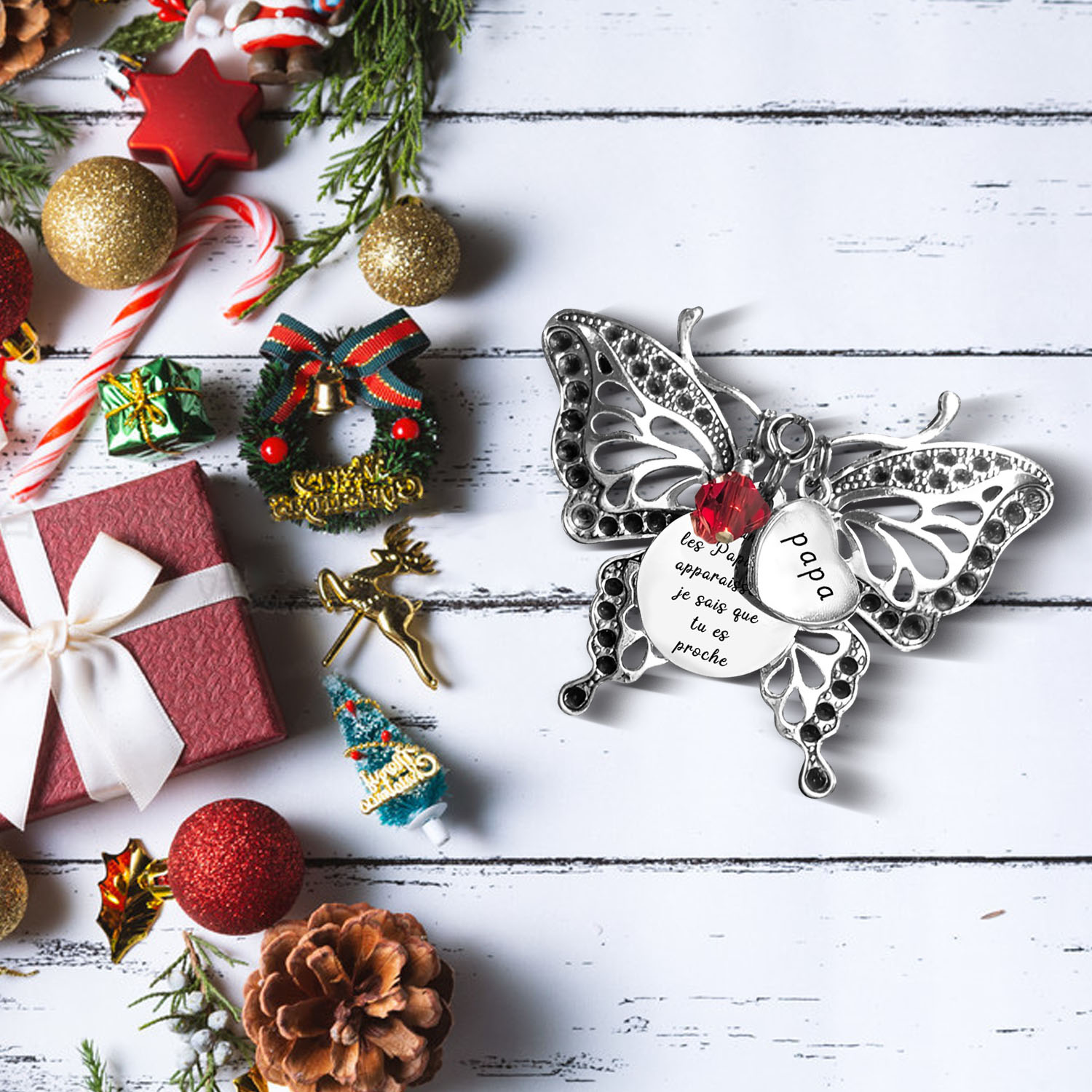 Décoration Sapin Noël Papillon avec 1 Prénom Personnalisé
