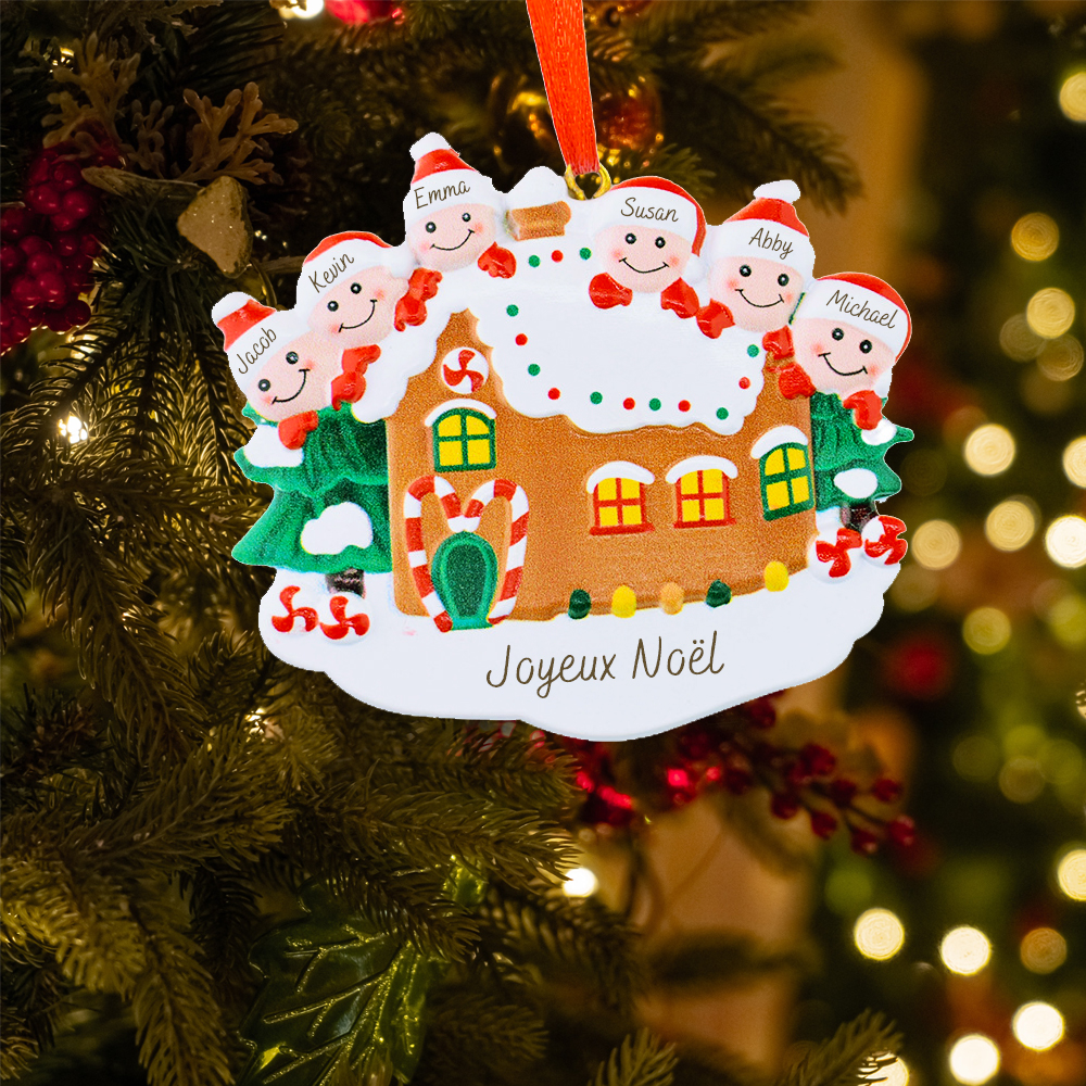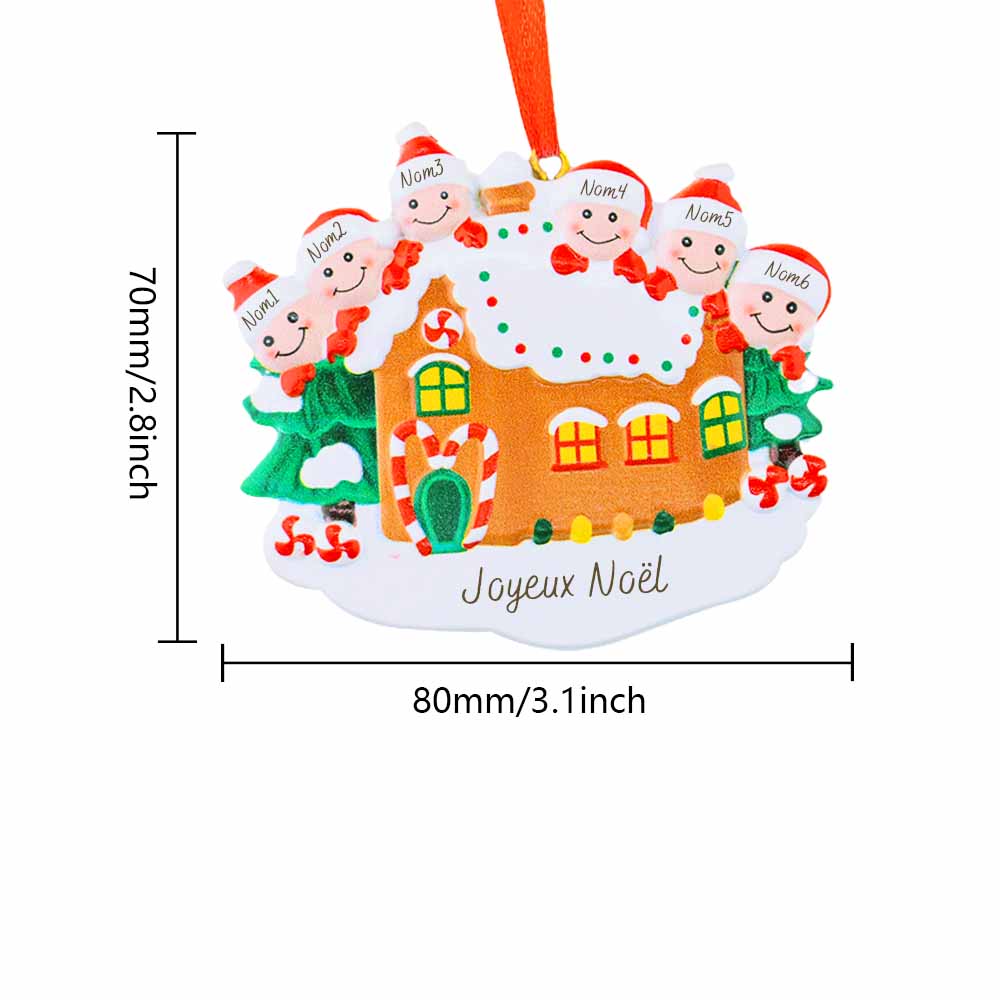 Décoration Sapin Noël Petite maison 6 Prénoms Personnalisés avec texte