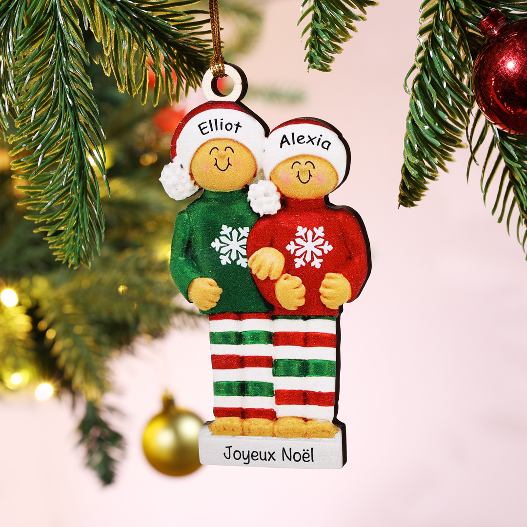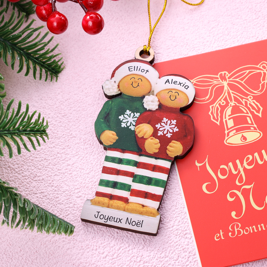Décoration Sapin Noël Poupée 2 Prénoms Personnalisés et texte