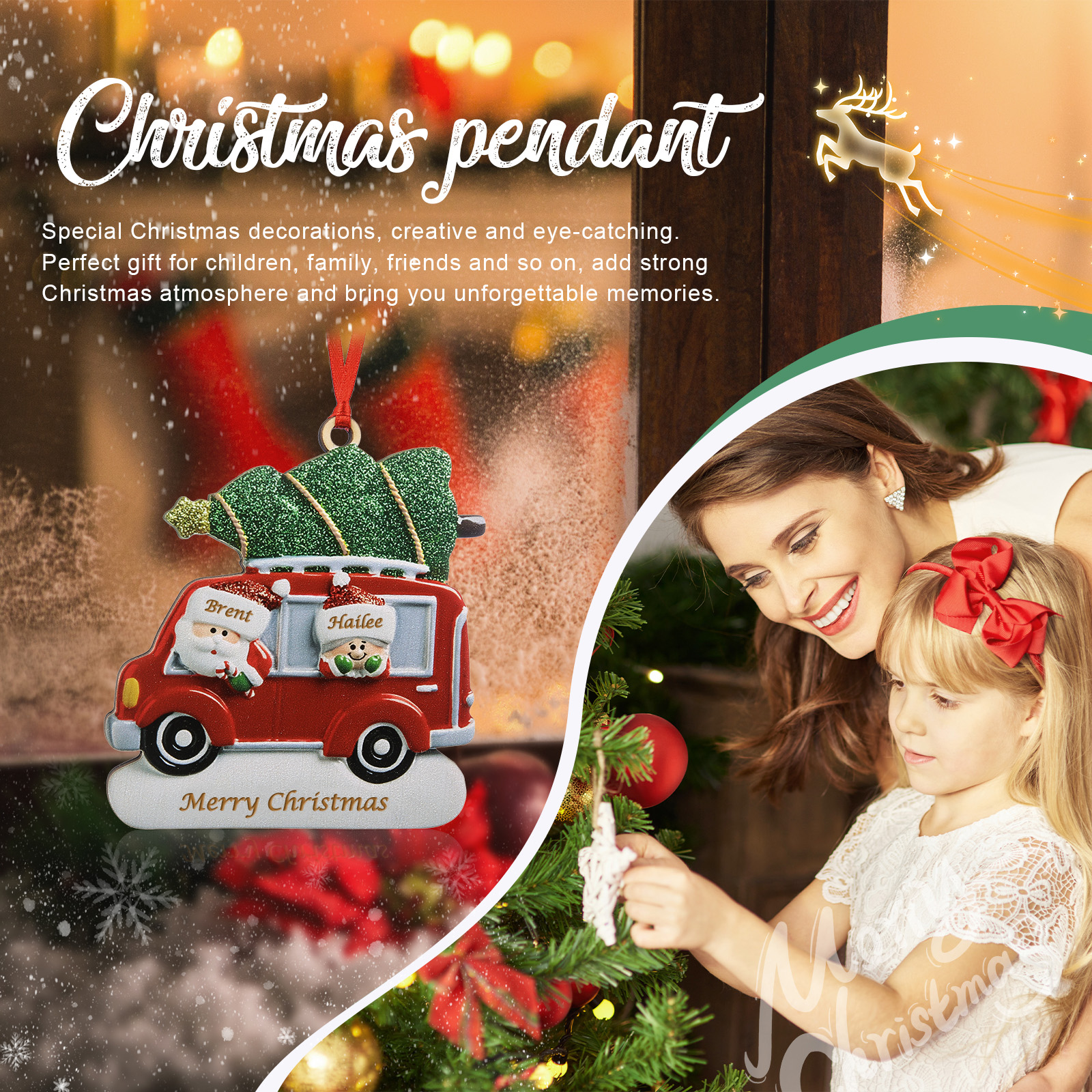 Décoration Sapin Noël Poupée avec auto 2 Prénoms Personnalisés et texte