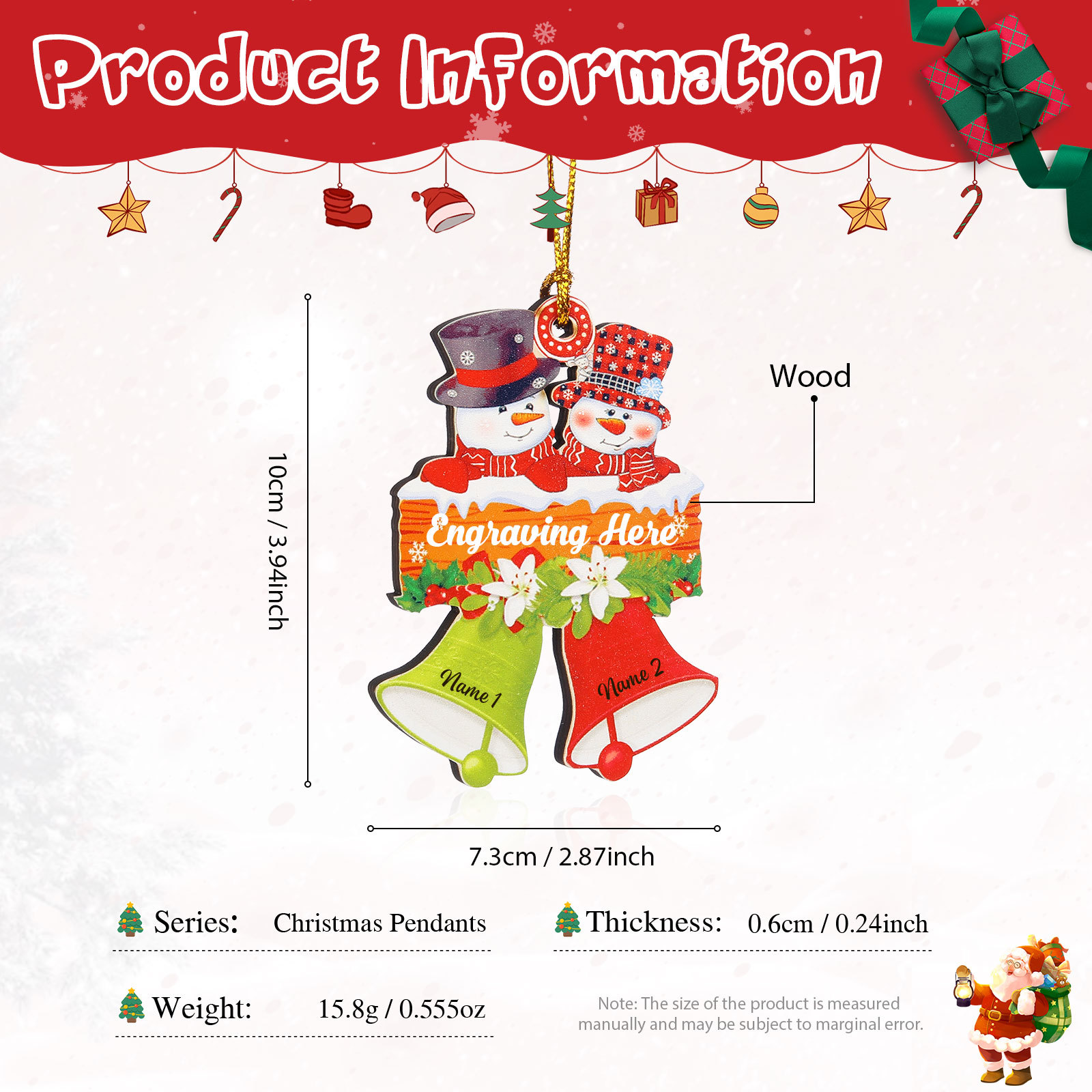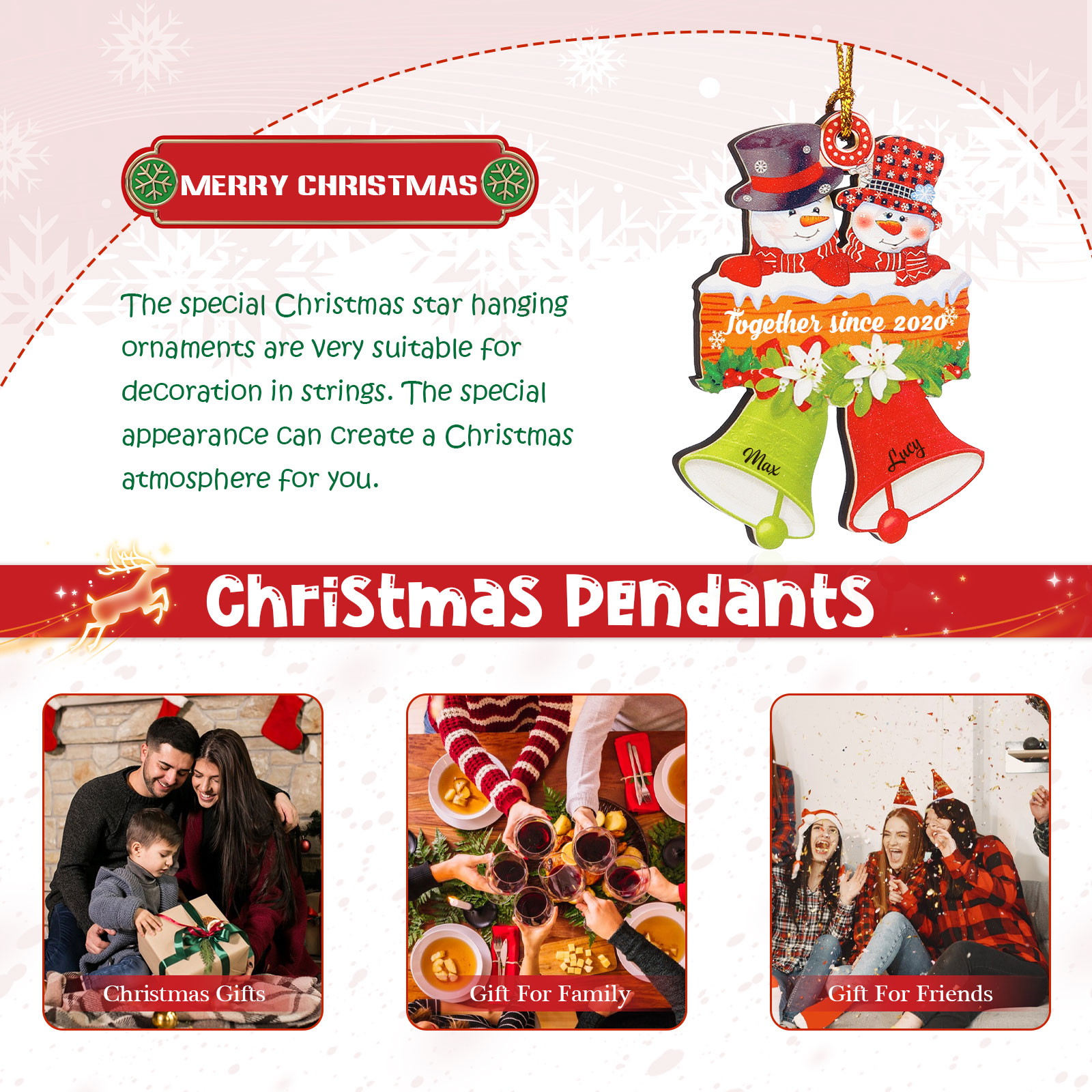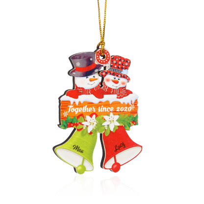 Décoration Sapin NoëlBonhomme de neige 2 Prénoms Personnalisés avec Texte