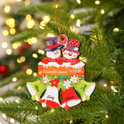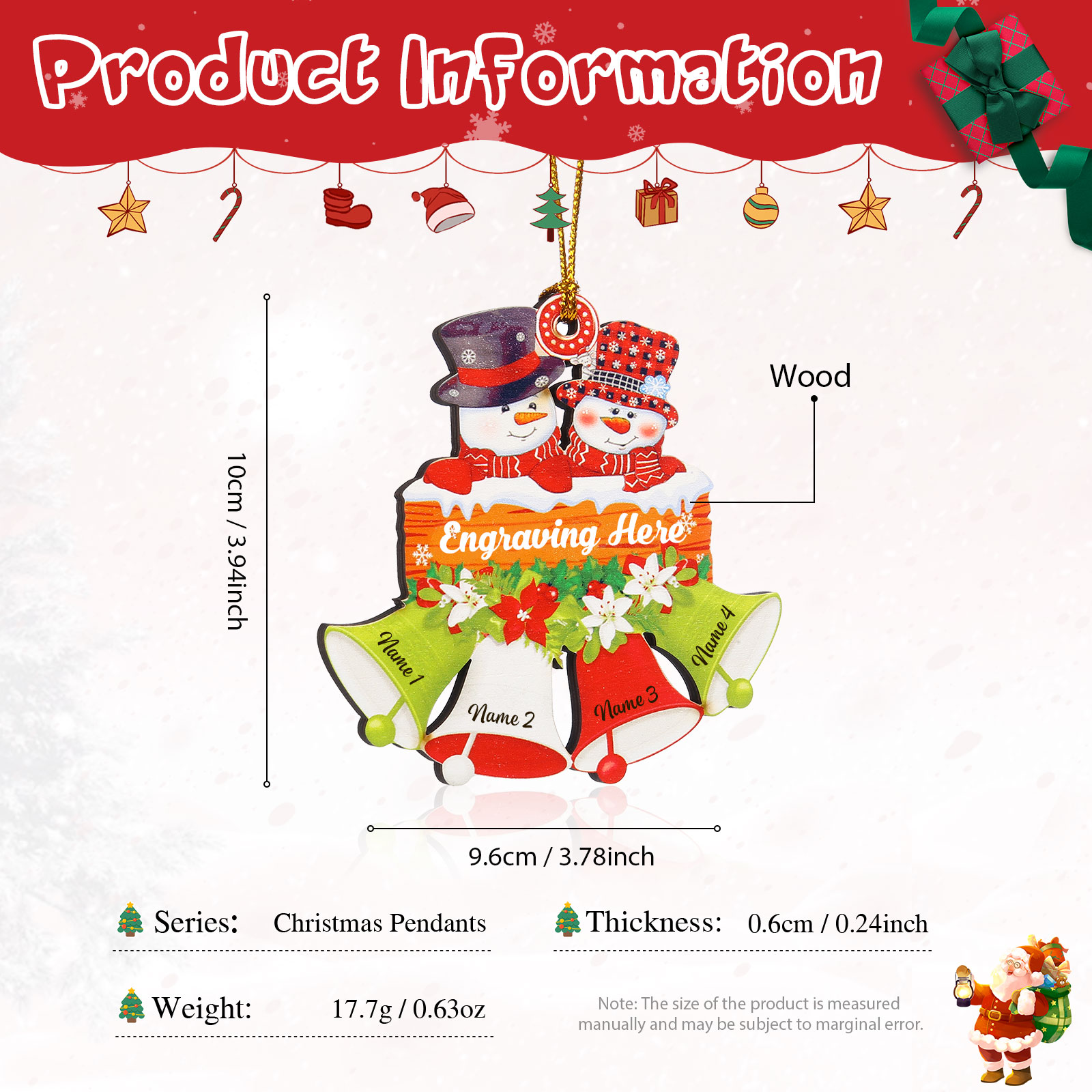 Décoration Sapin NoëlBonhomme de neige 4 Prénoms Personnalisés avec Texte