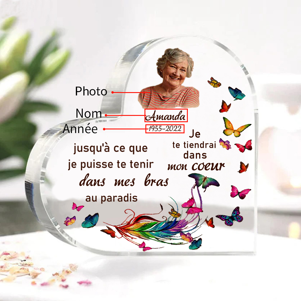 Plaque Acrylique Commémorative en Forme de Coeur Plaque Funéraire 1 Prénom Personnalisé avec Années et Photo