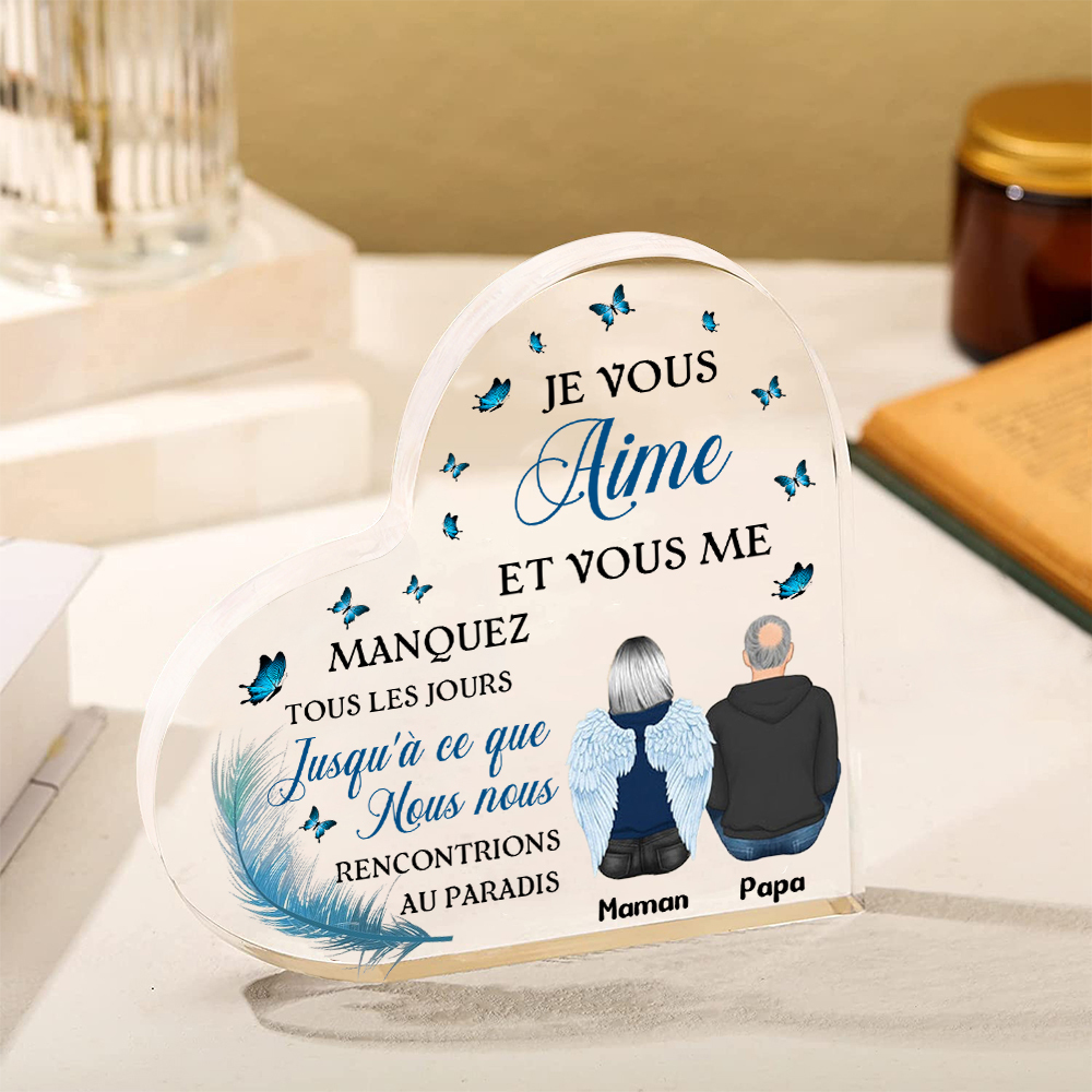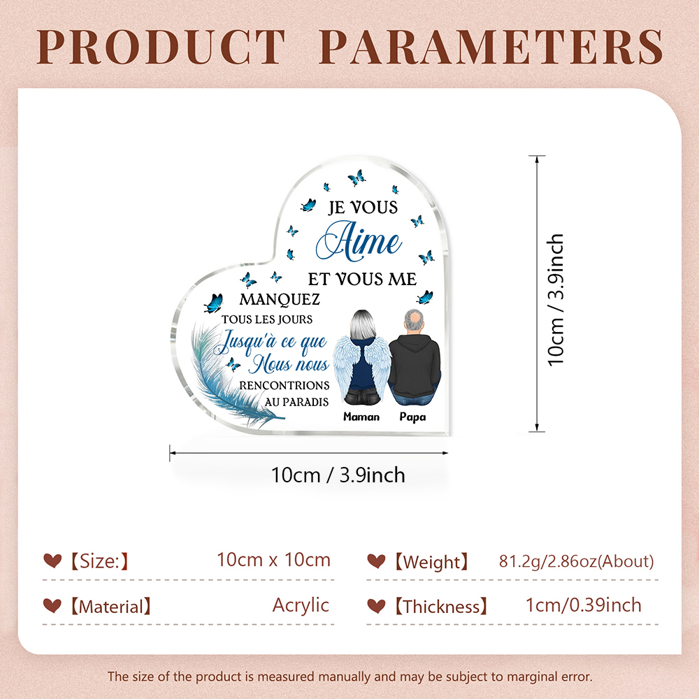 Plaque Acrylique Commémorative en Forme de Cœur Plaque Funéraire 2 Prénoms Personnalisés