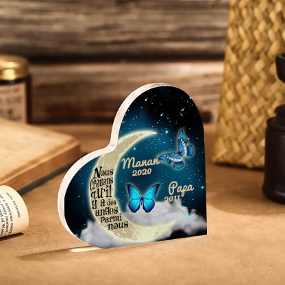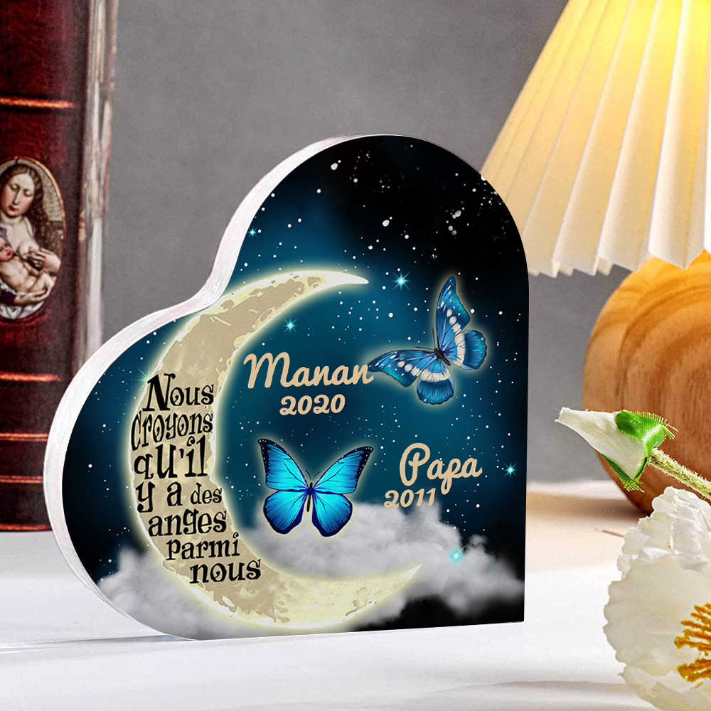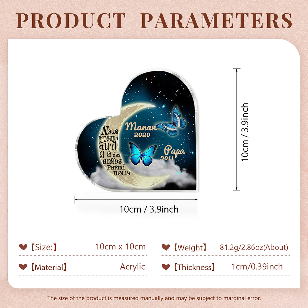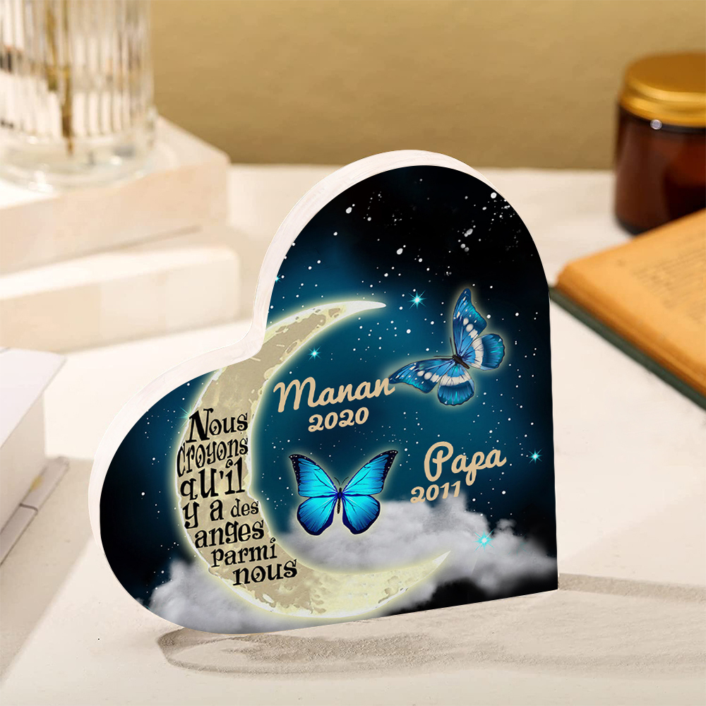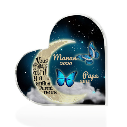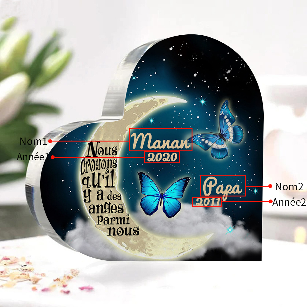 Plaque Acrylique Commémorative en Forme de Cœur 2 Prénoms Personnalisés avec 2 Années