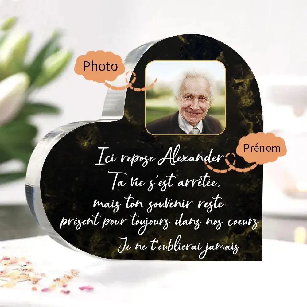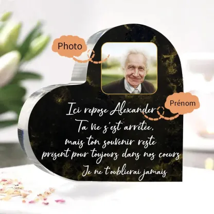 Plaque Acrylique Commémorative en Forme de Cœur Prénom et Photo Personnalisés