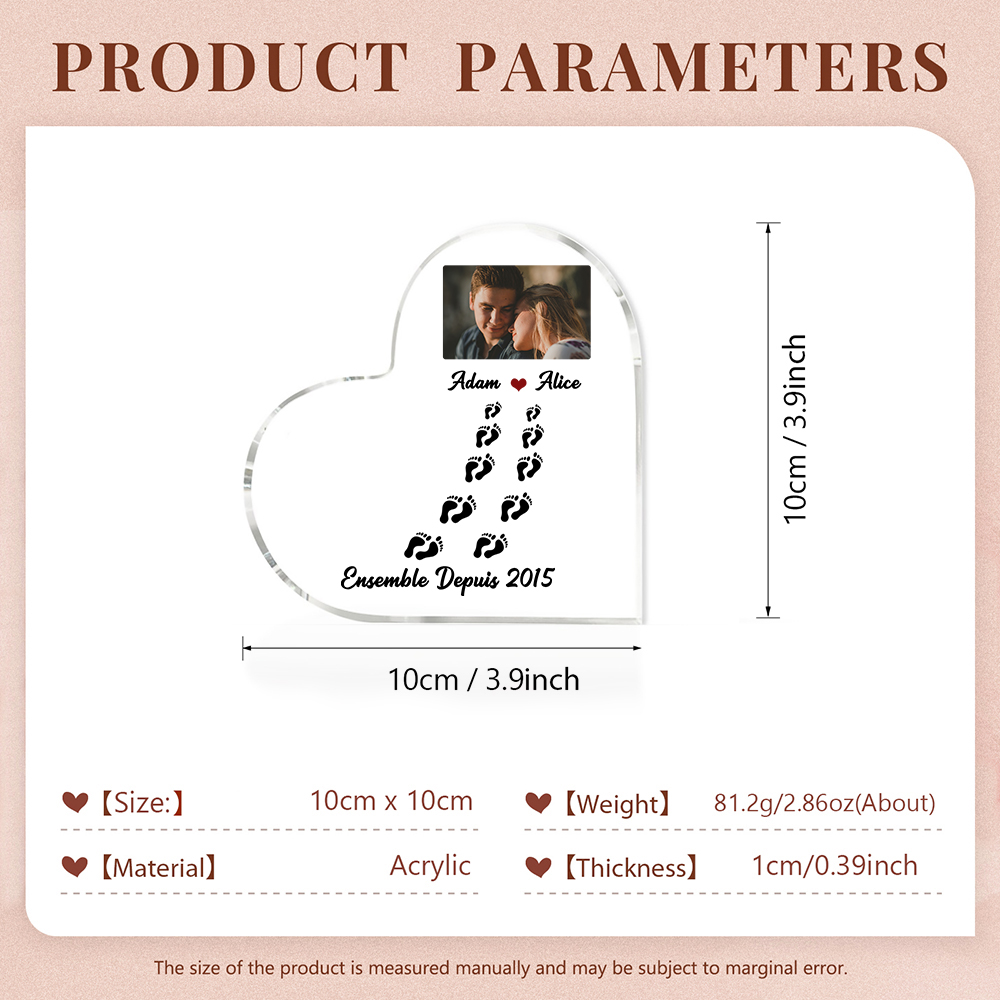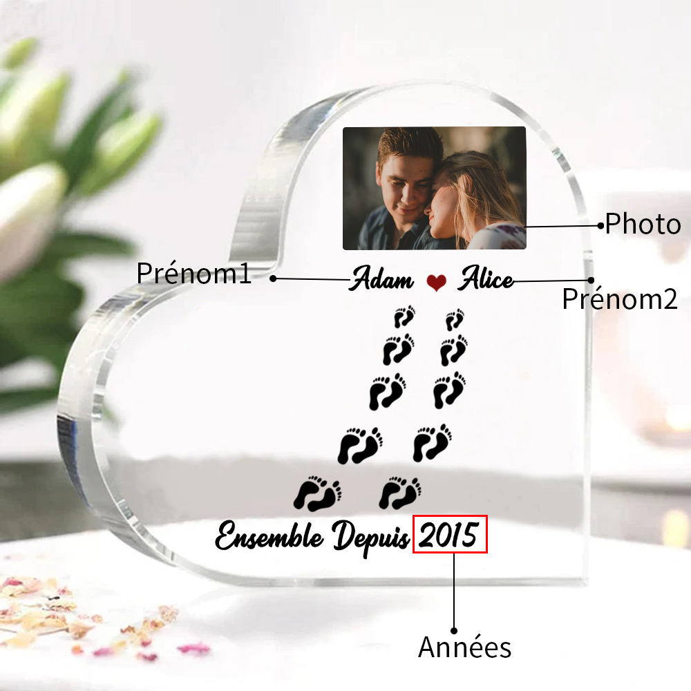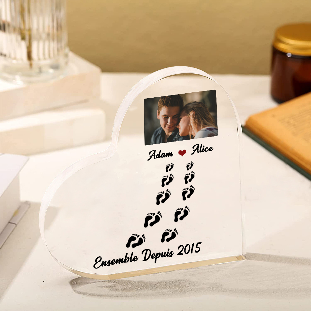 Plaque Acrylique en Forme de Cœur 2 Prénoms Personnalisés avec 1 Photo et Année pour Couple