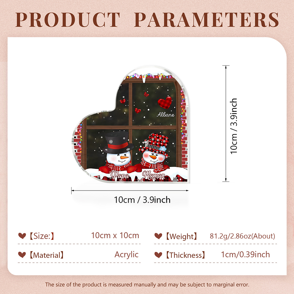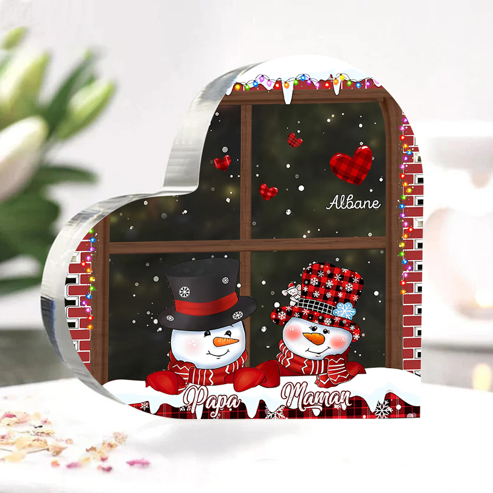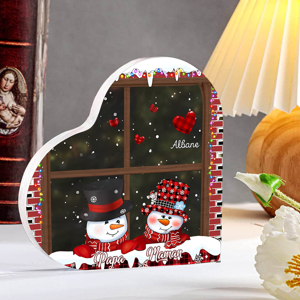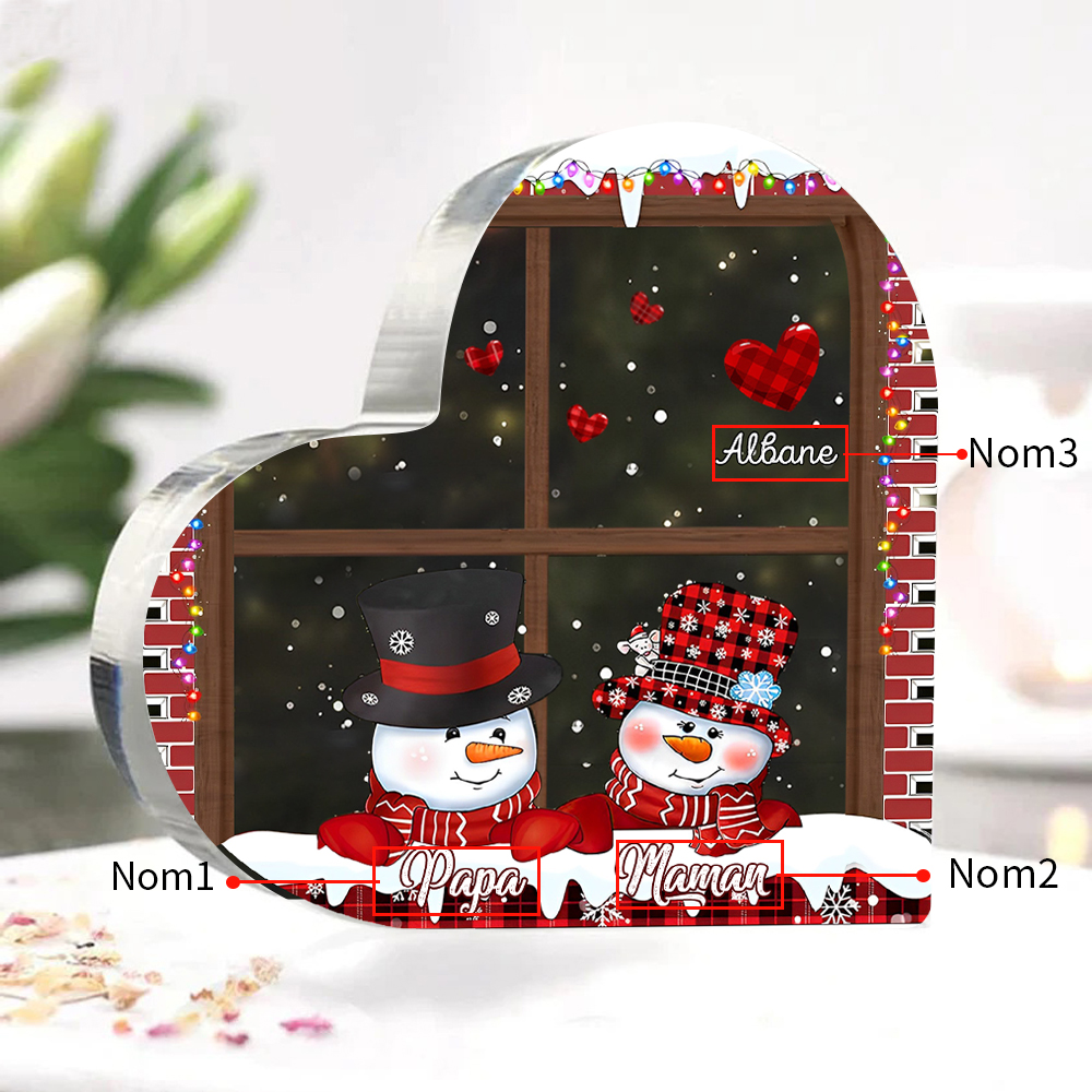 Plaque Acrylique en Forme de Cœur de Noël 3 Prénoms Personnalisés