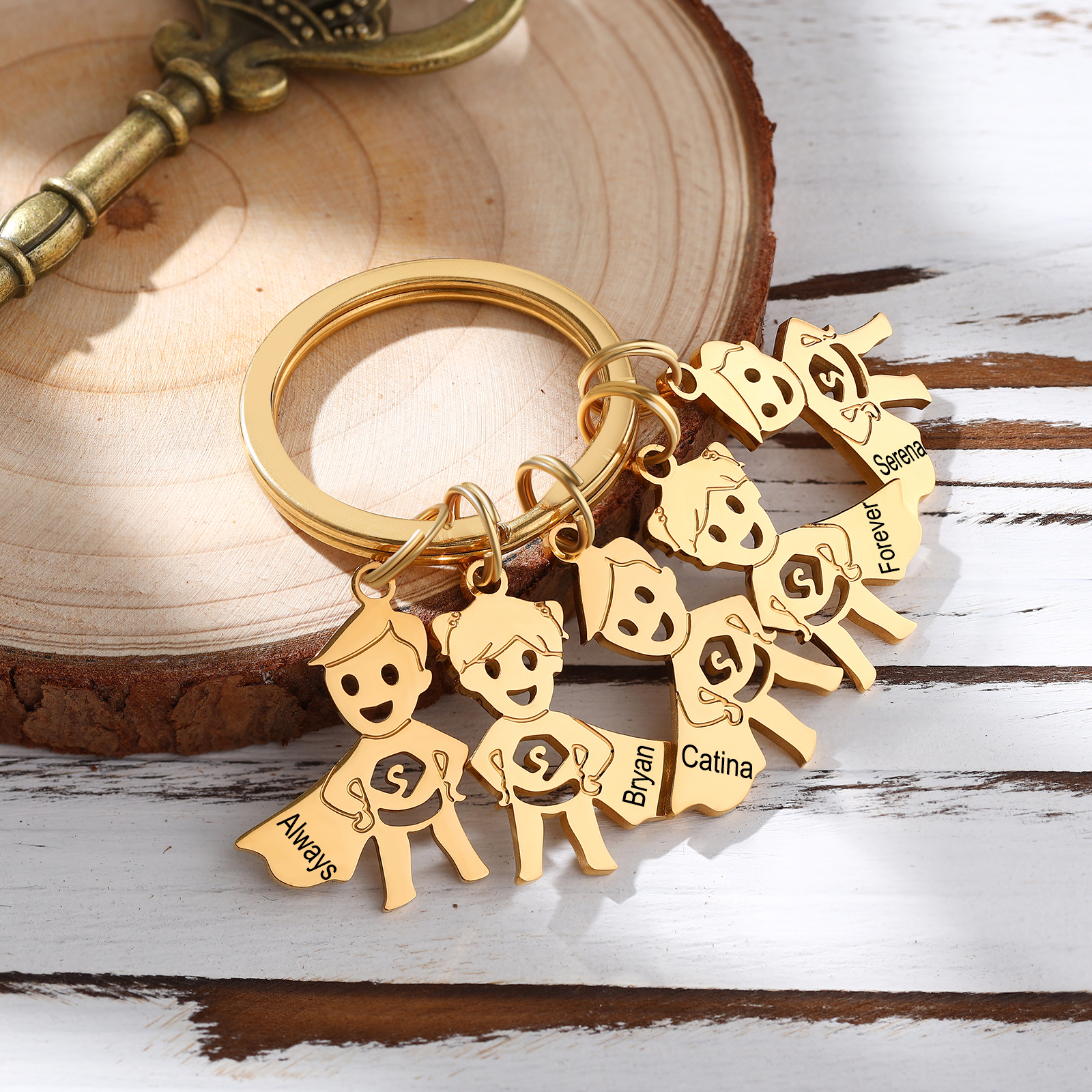 Porte-Clés 5 Prénoms Personnalisé avec Breloques 5 Enfants