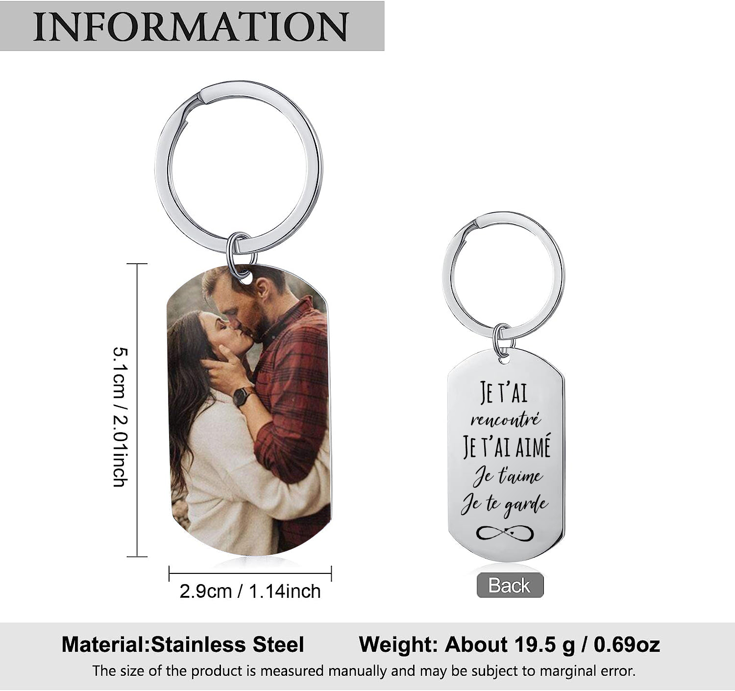 Porte-Clés Couple Photo Personnalisée
