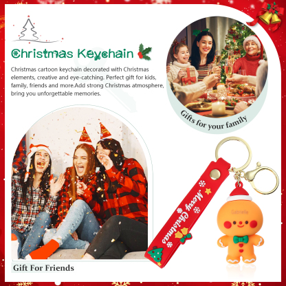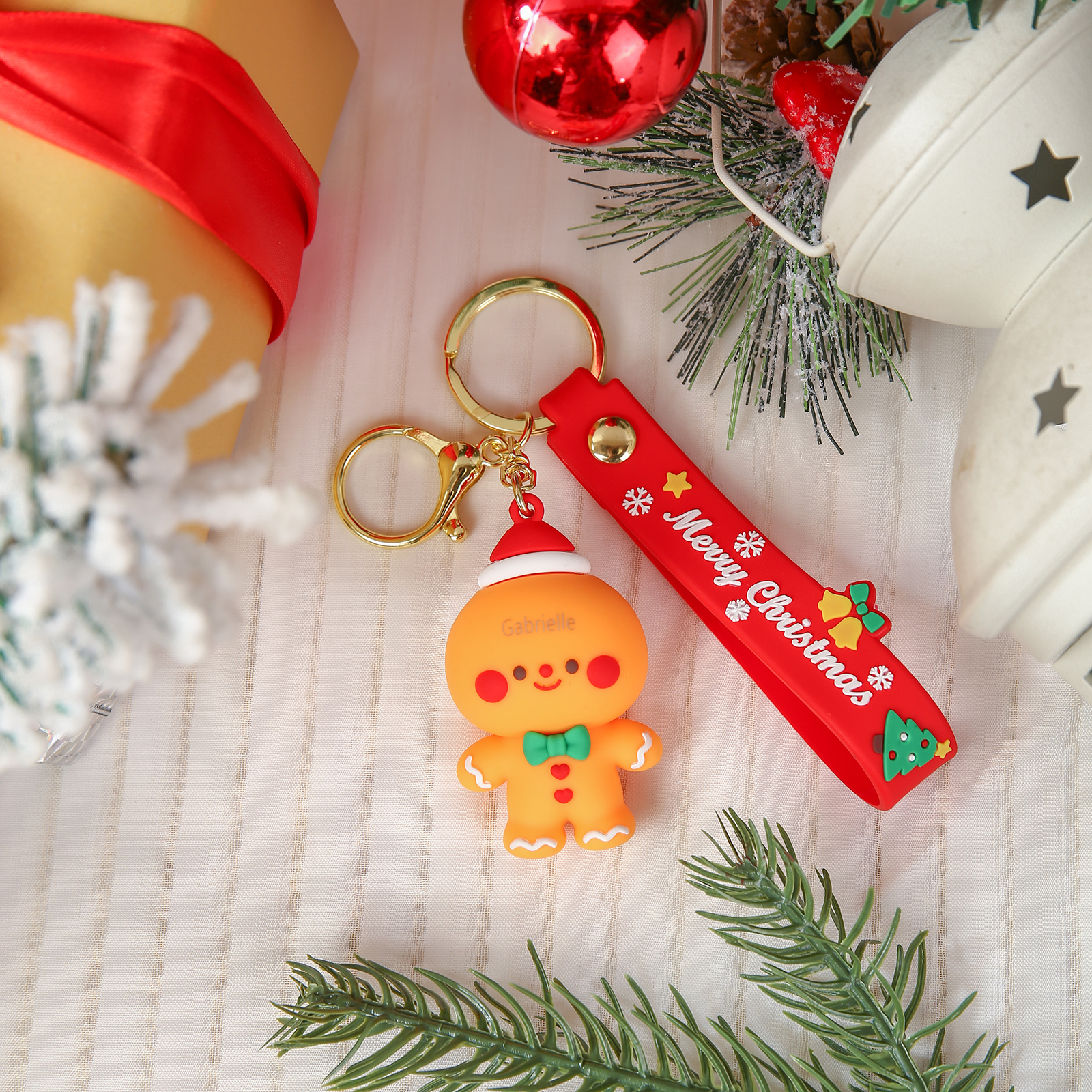 Porte-clés de Noël Bonhomme en Pain d'épice en PVC avec 1 Prénom Personnalisé