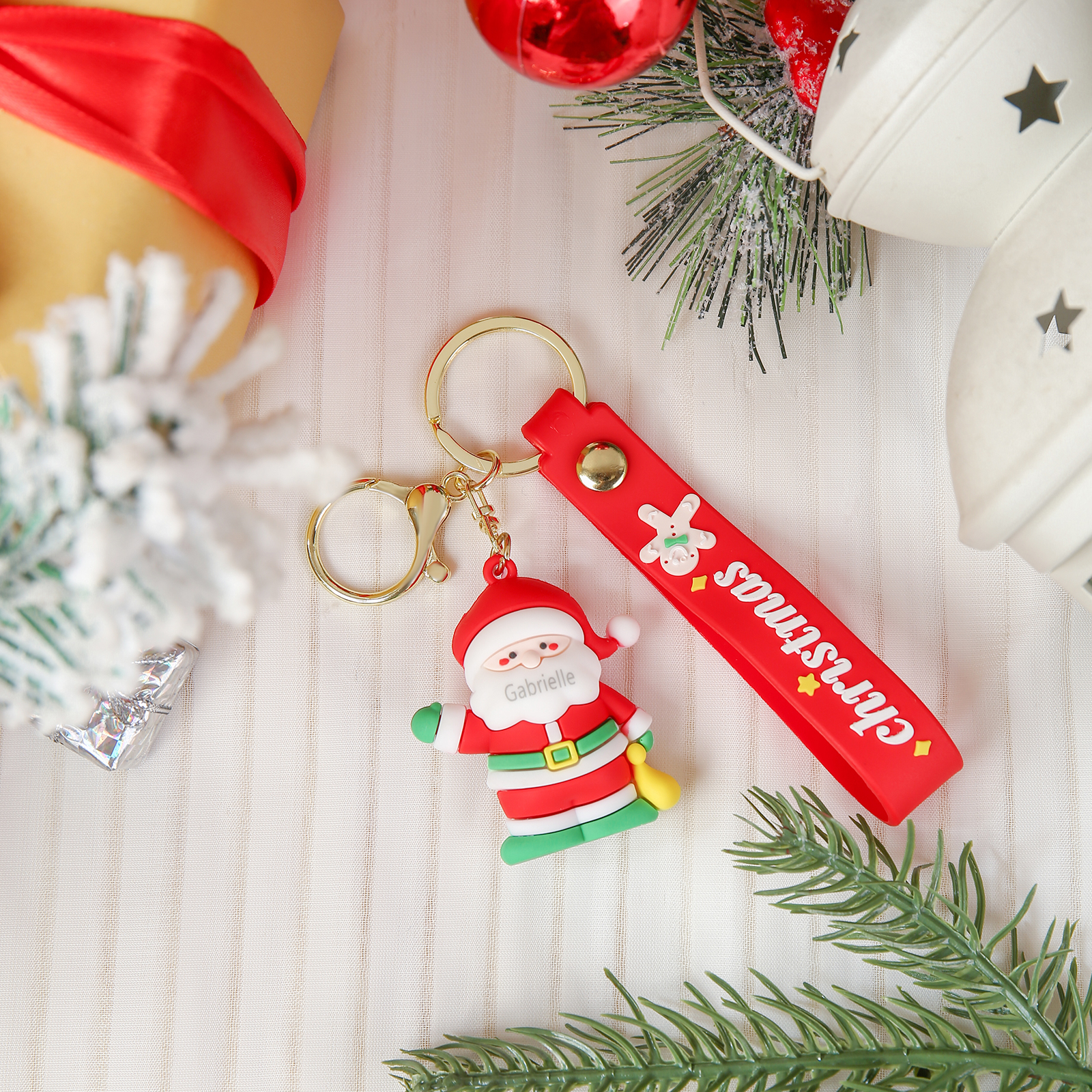 Porte-clés de Noël Père Noël en PVC avec 1 Prénom Personnalisé