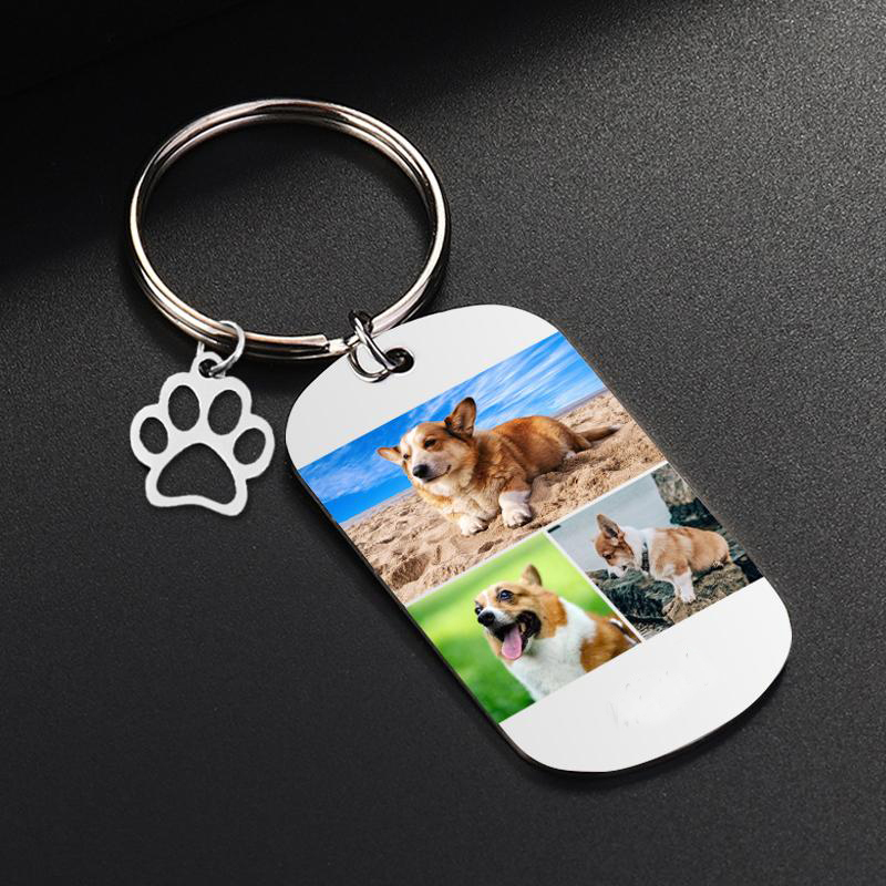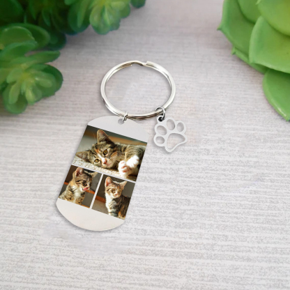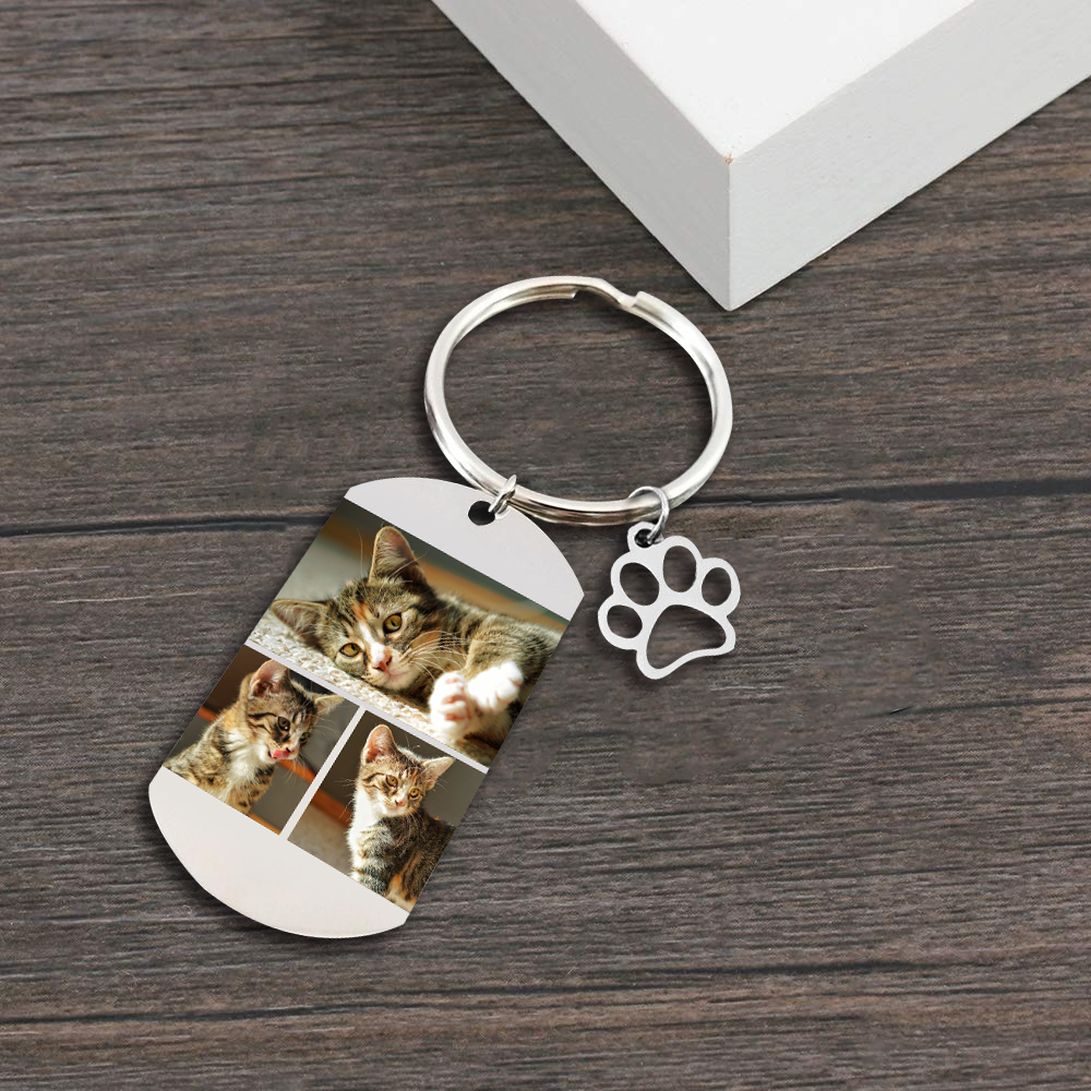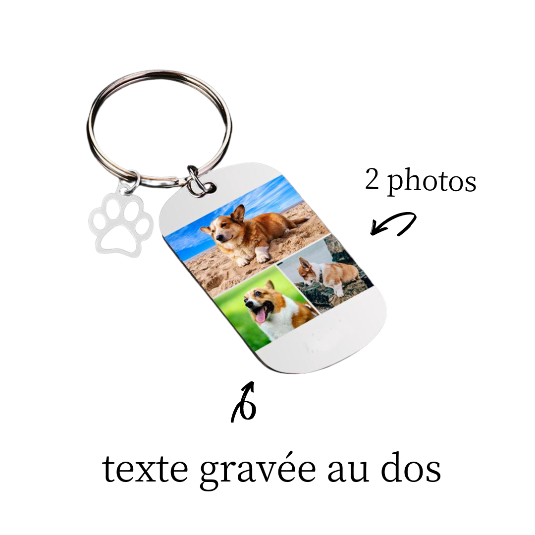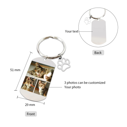 Porte-Clés Griffe d'animal familier 3 Photo Personnalisé Avec texte