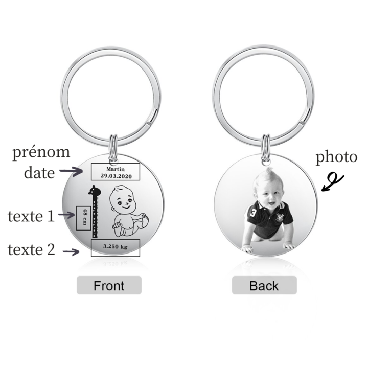 Porte-Clés Informations personnalisées sur la naissance de bébé