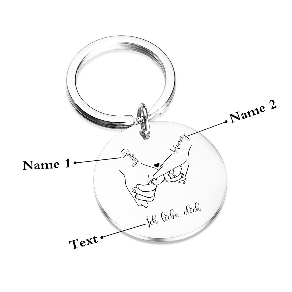 Porte-Clés La Main Dans La Main 2 Prénoms Personnalisés avec Texte