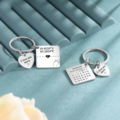 Porte-Clés la main dans la main texte Personnalisé avec 2 lettres et date