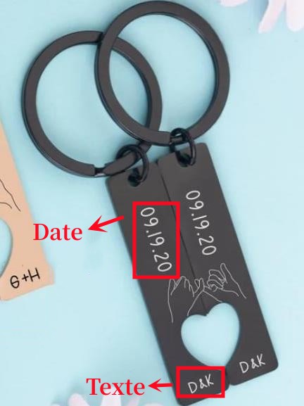 Porte-Clés la main dans la main Texte Personnalisé avec date
