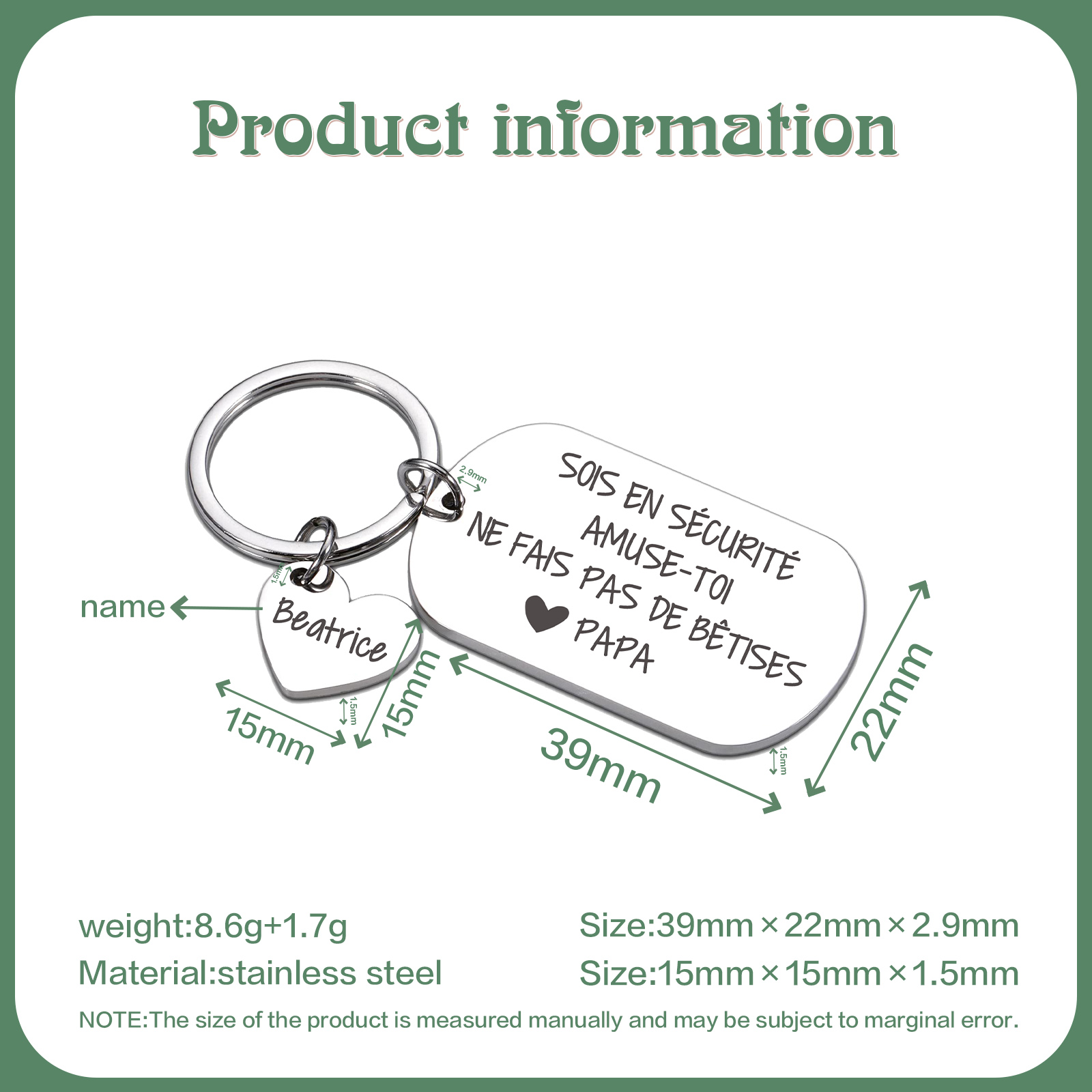 Porte-Clés pour Fils/fille 1 Prénom Personnalisé Cadeau de Papa