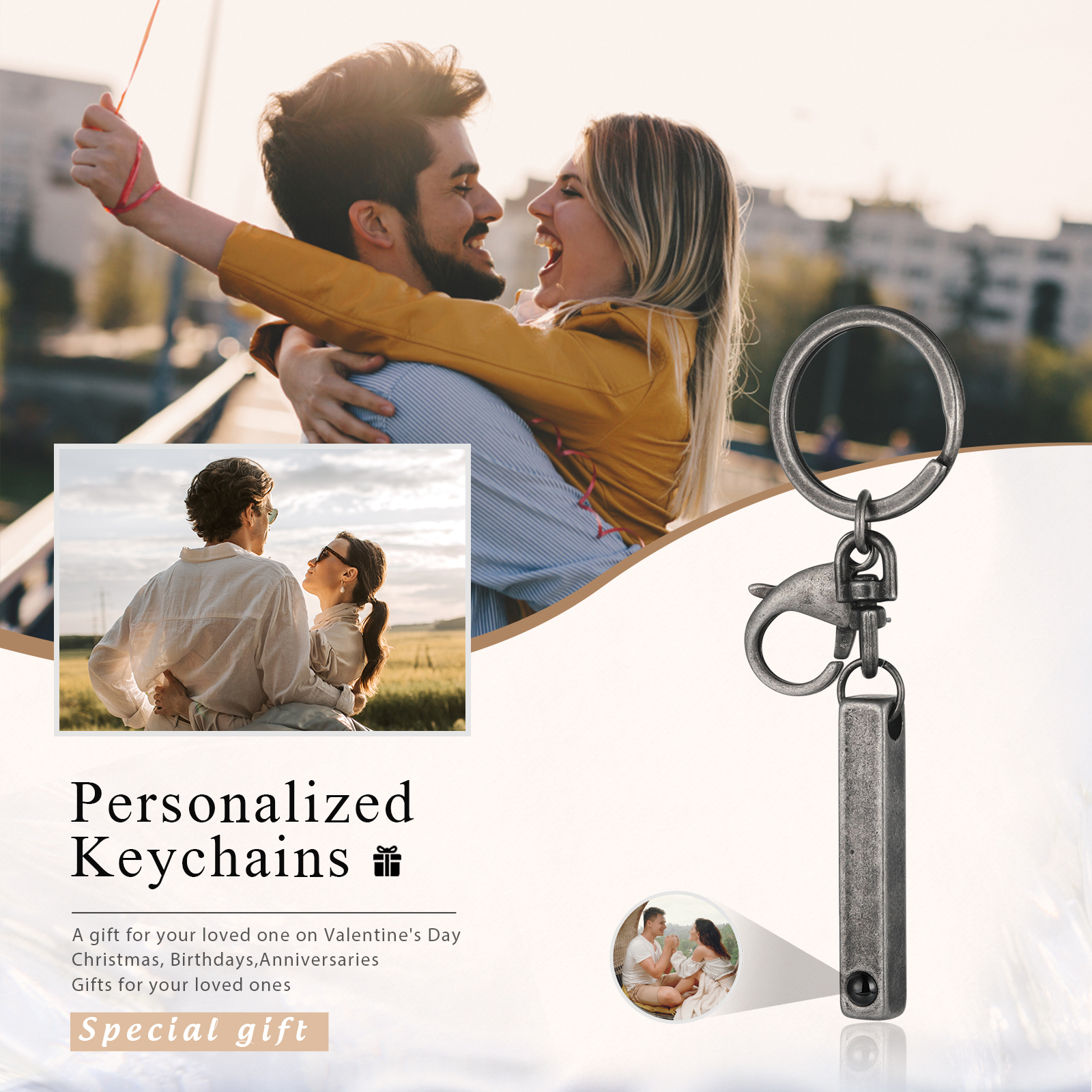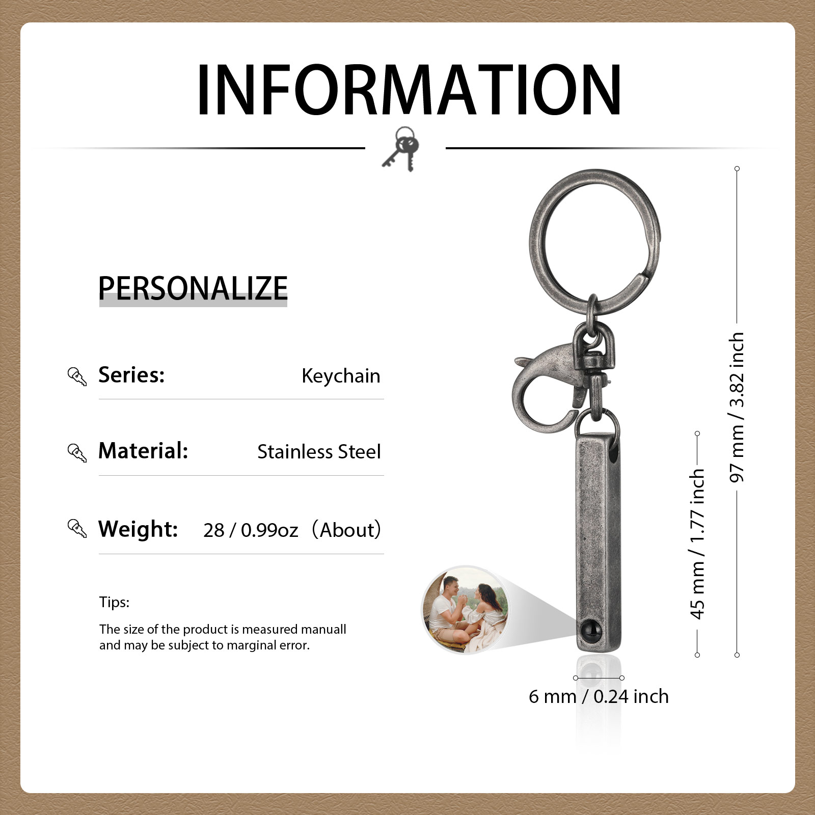 Porte-Clés Projection de Pierres 1 Photo Personnalisée