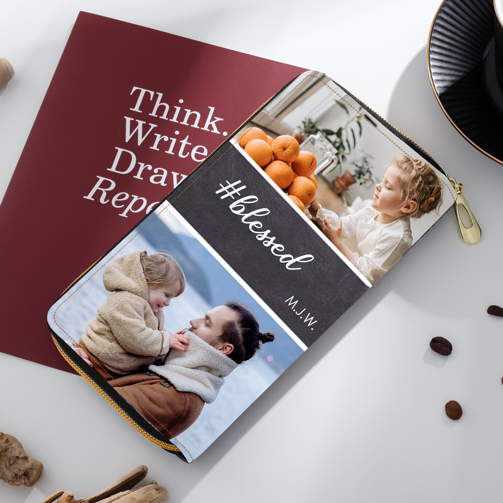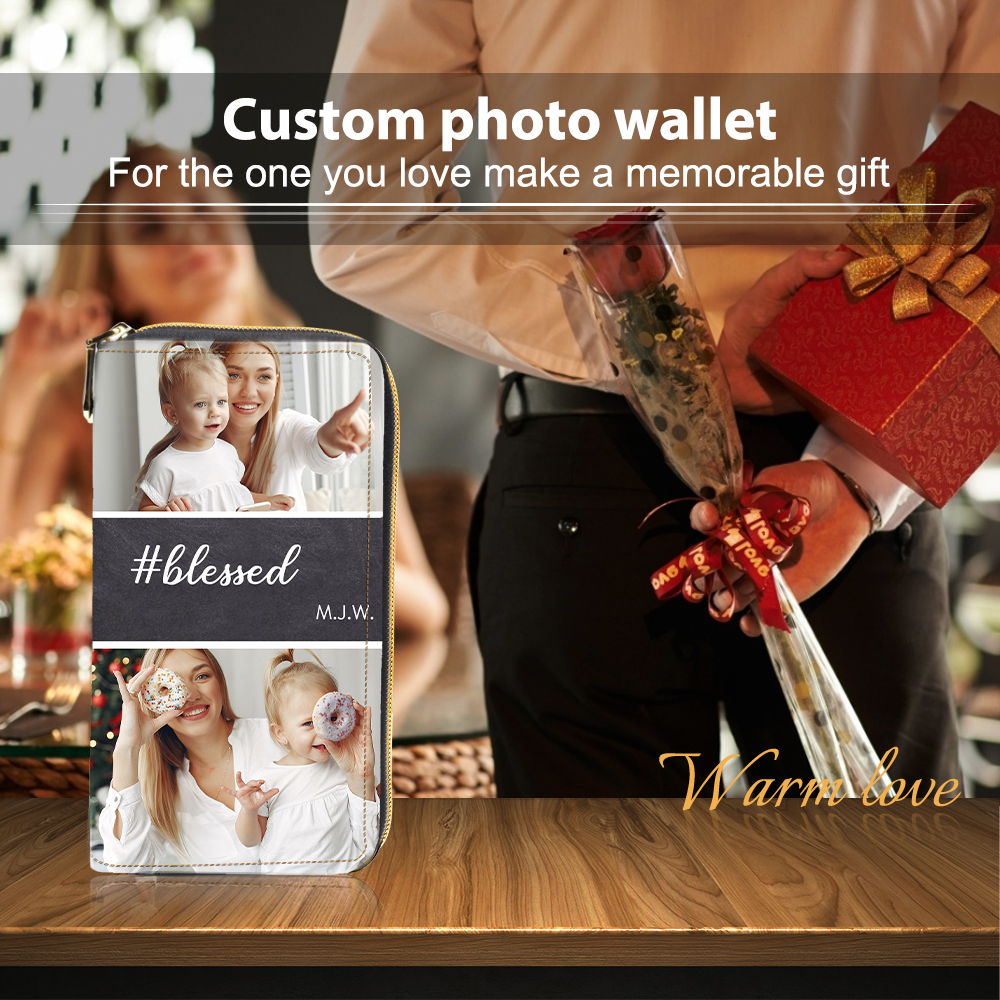 Portefeuille long en cuir PU personnalisé 4 photos avec texte