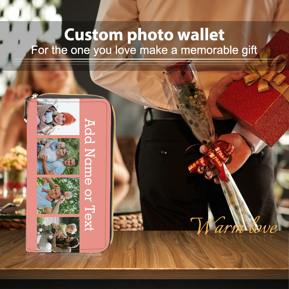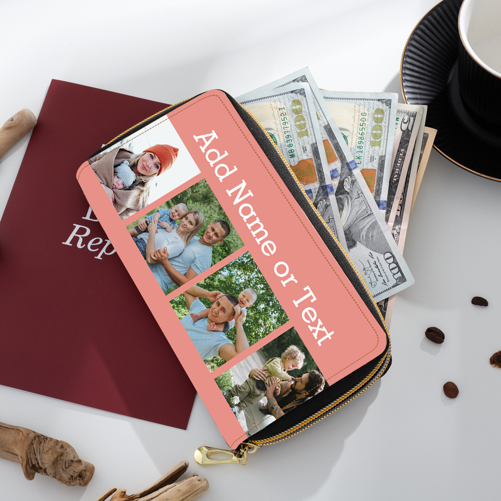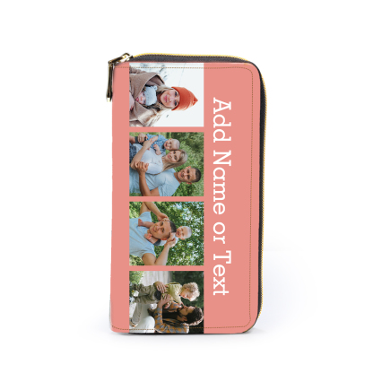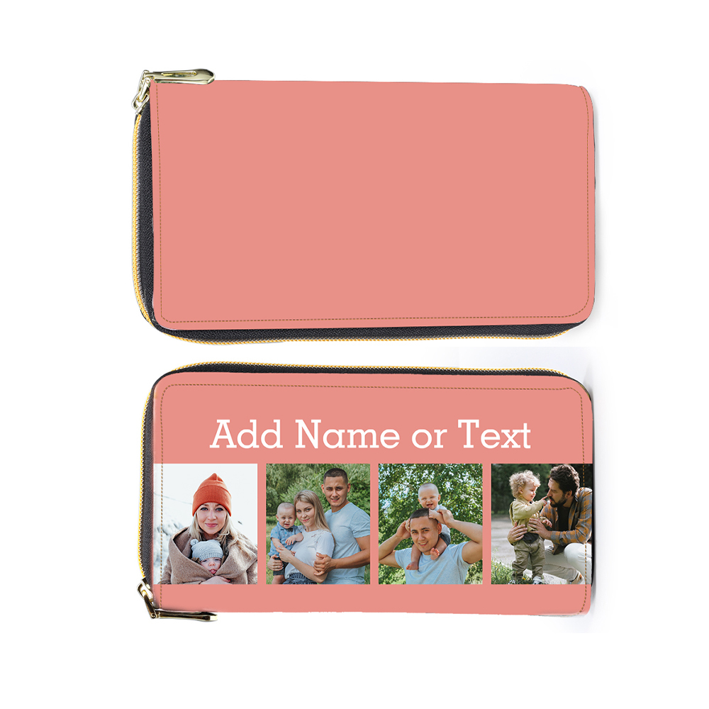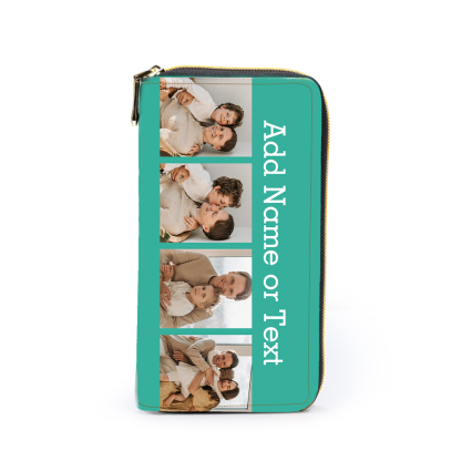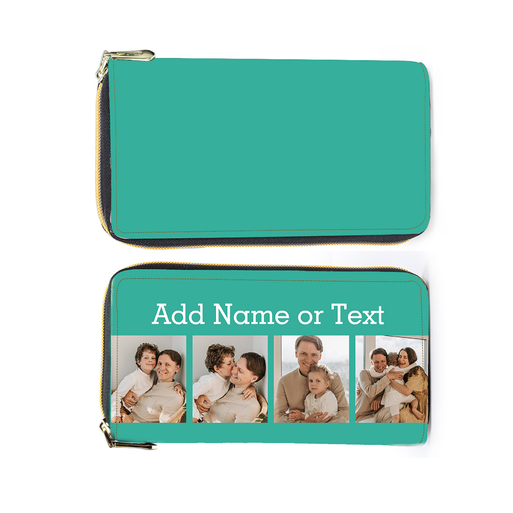 Portefeuille long en cuir PU personnalisé 4 photos avec texte