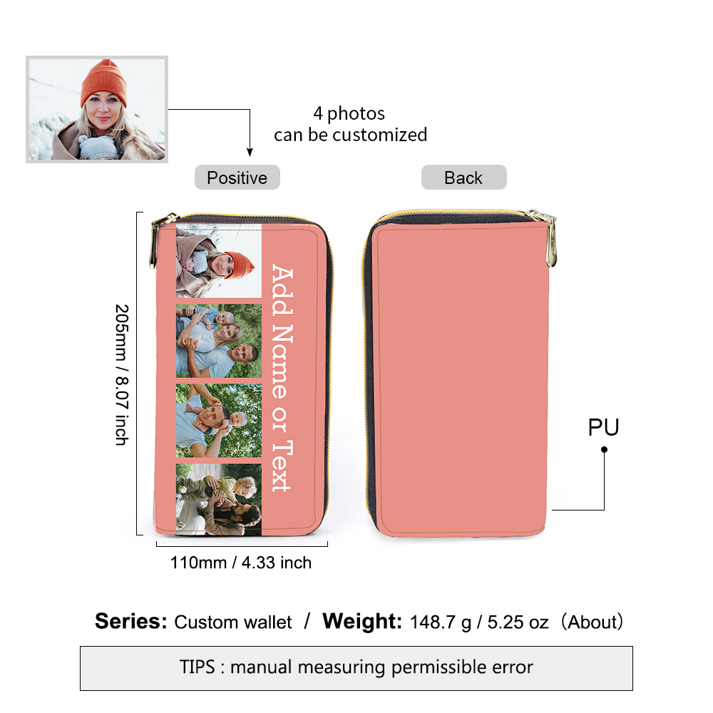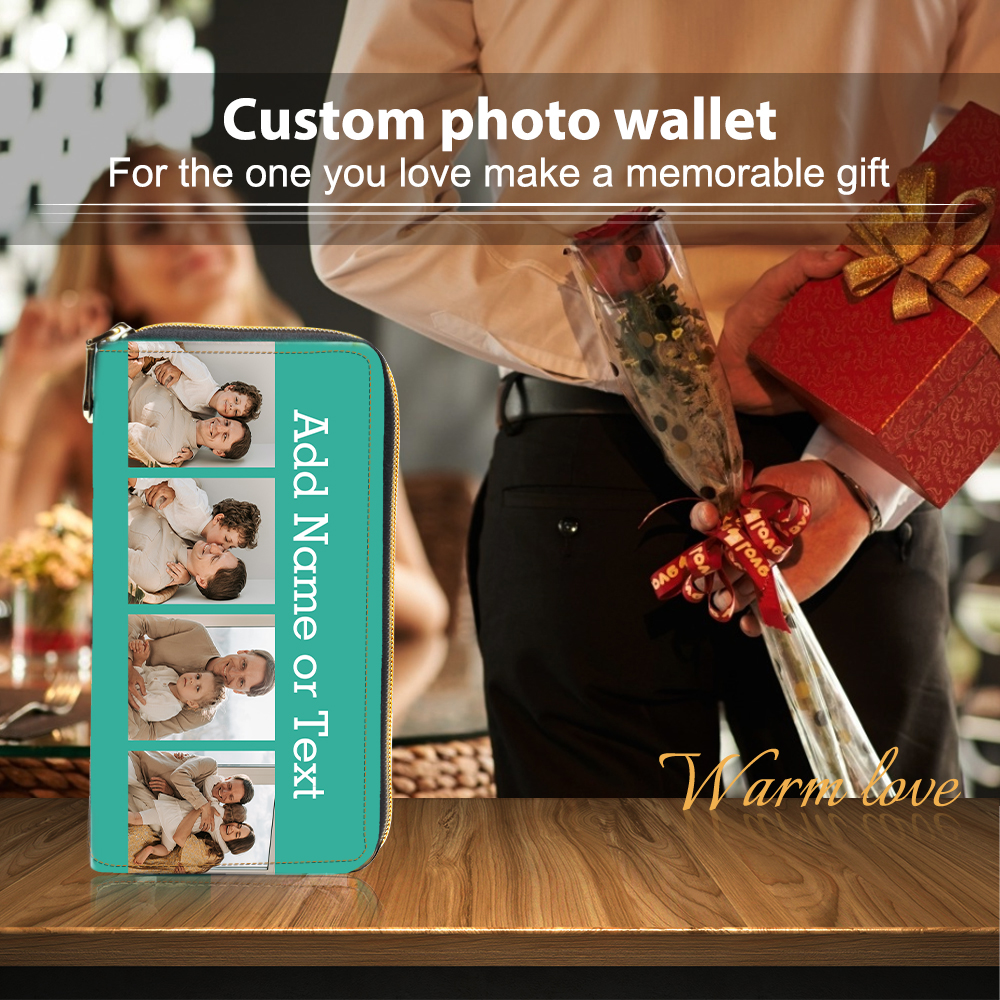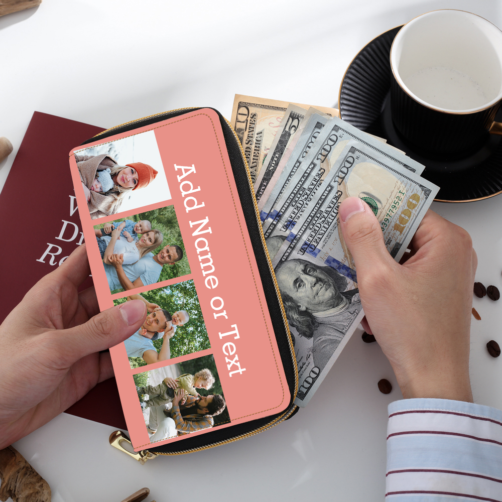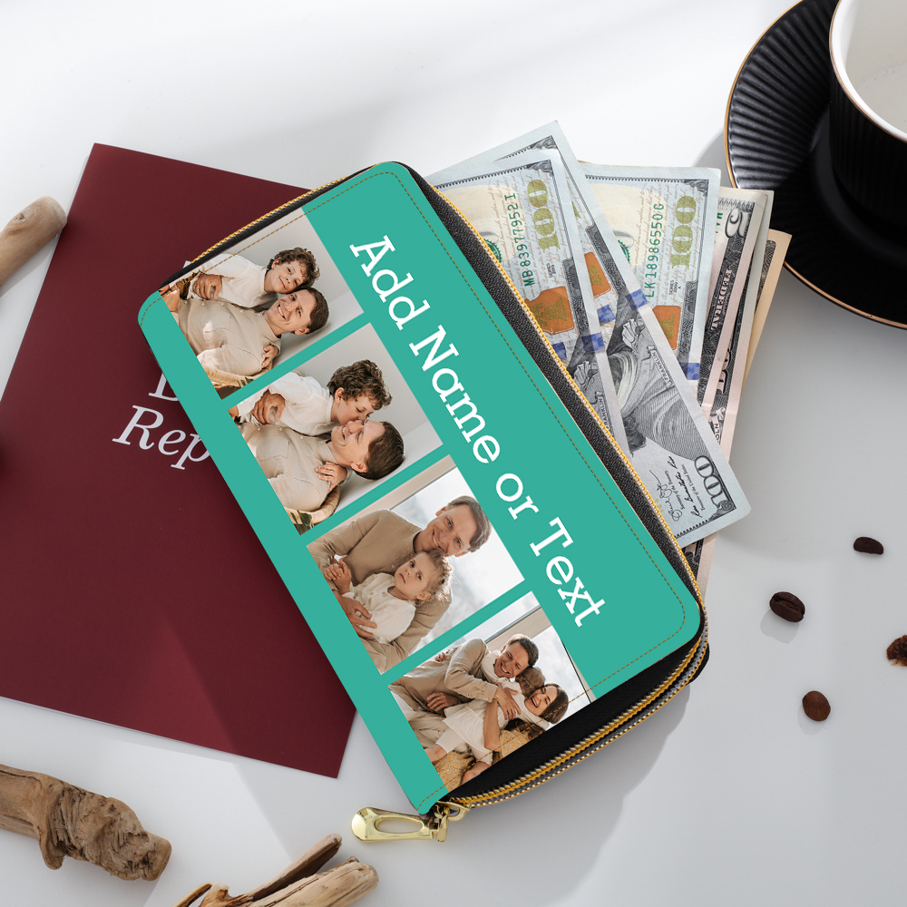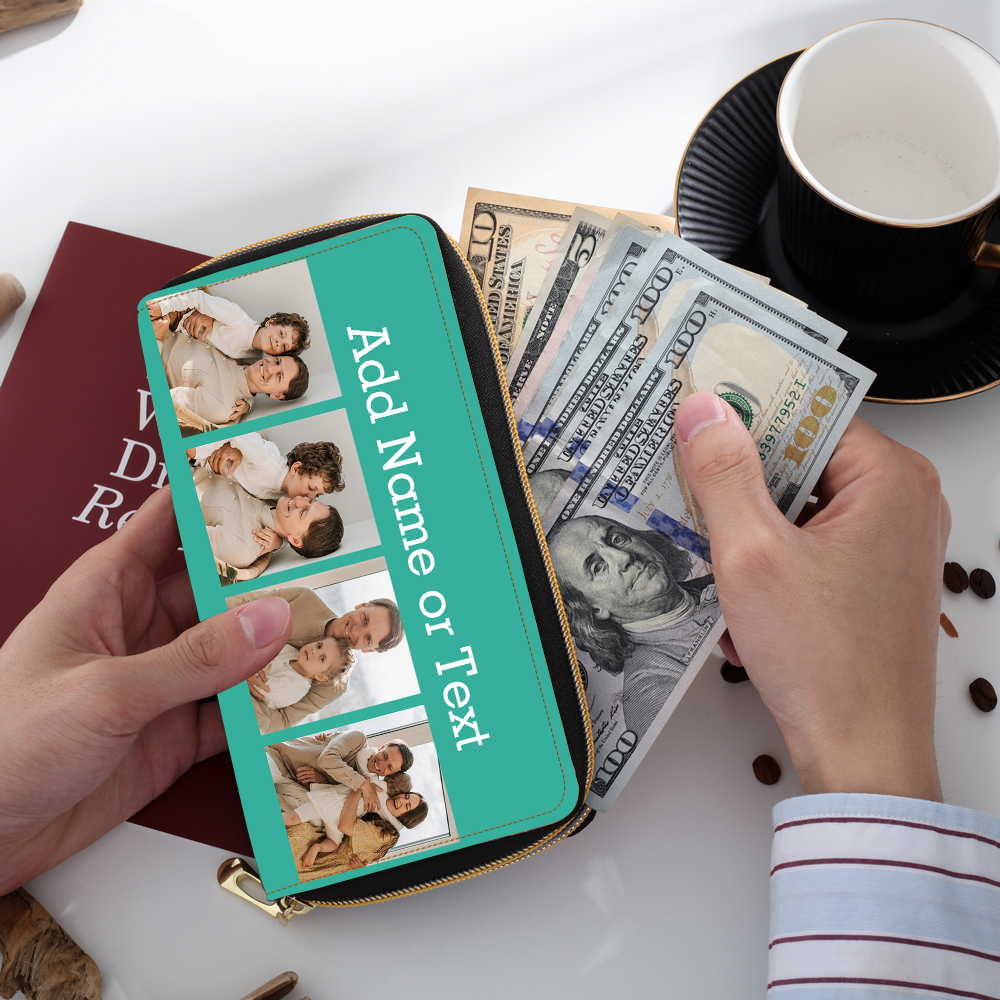 Portefeuille long en cuir PU personnalisé 4 photos avec texte