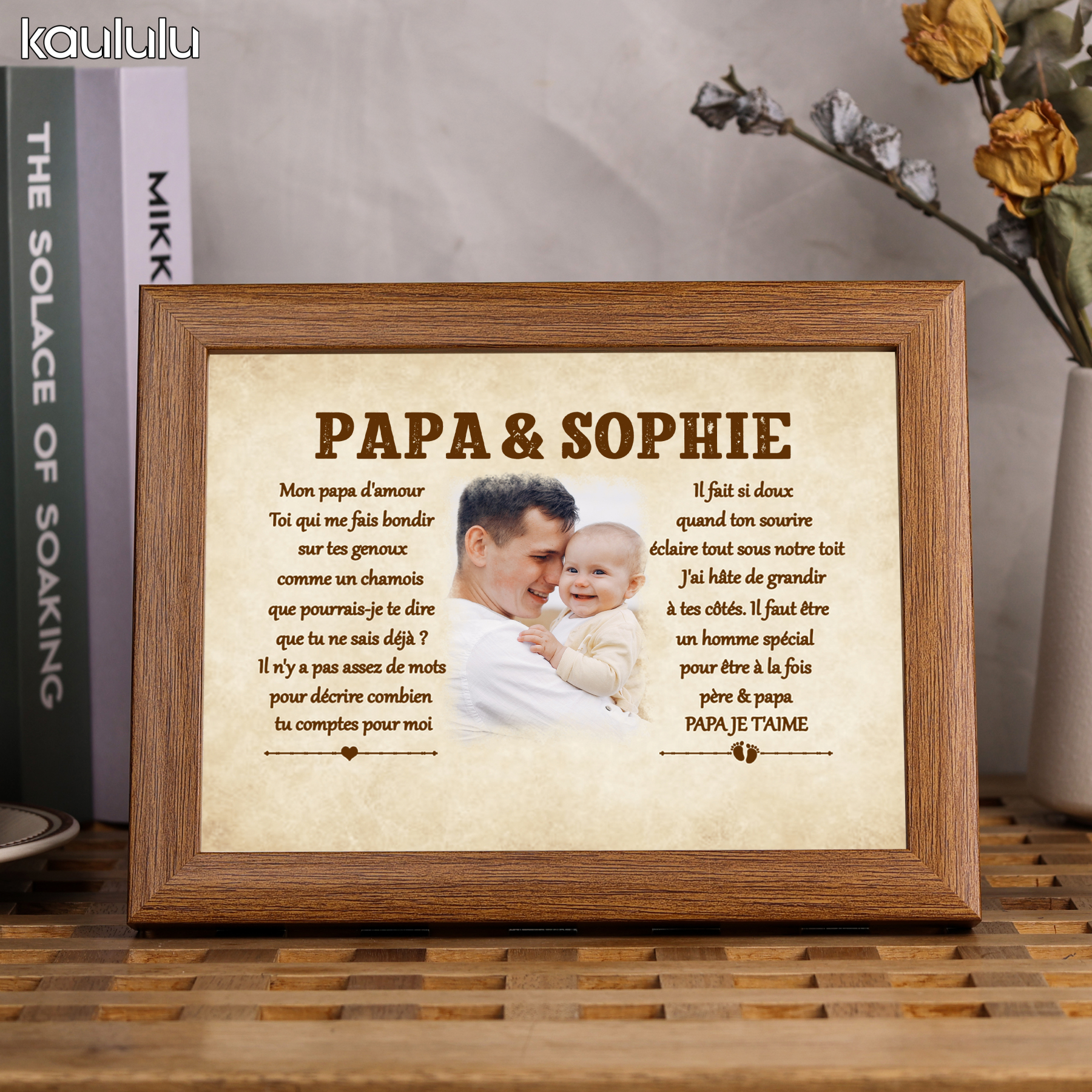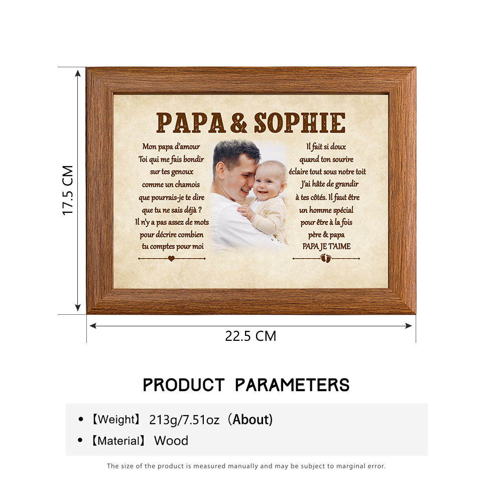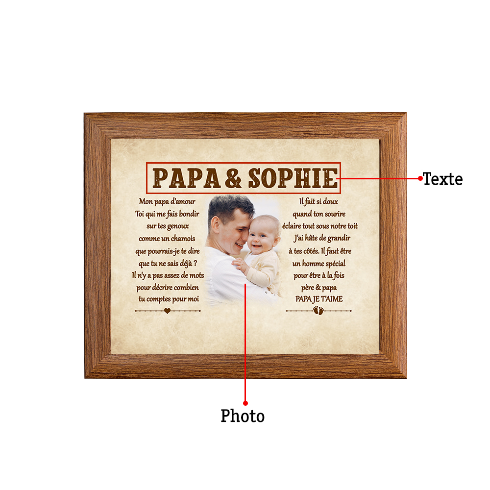 Pour PAPA - Cadre en bois personnalisé 1 texte avec 1 photo