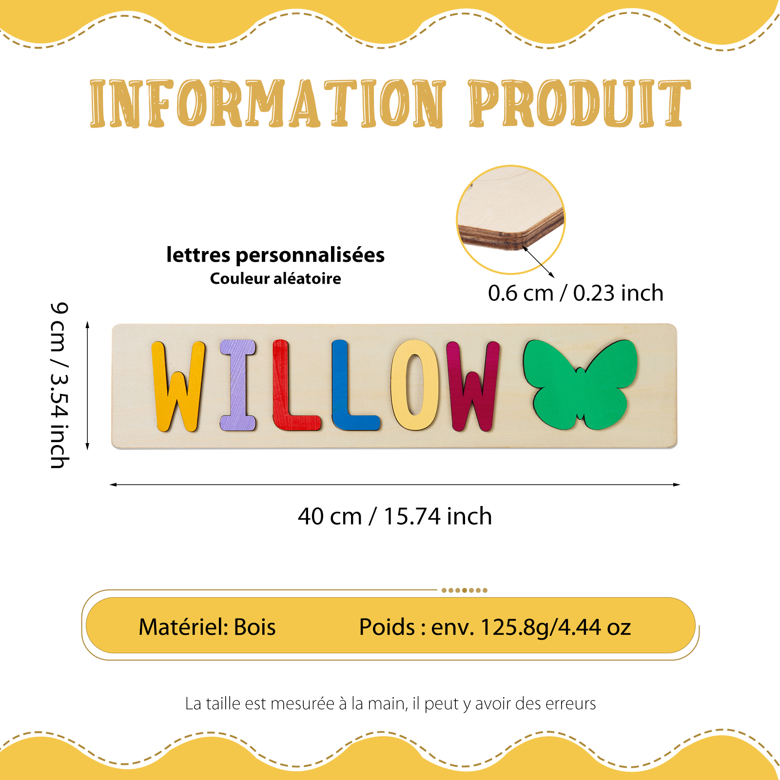 Puzzles bébé nom personnalisé avec papillon Jouets d'apprentissage précoce