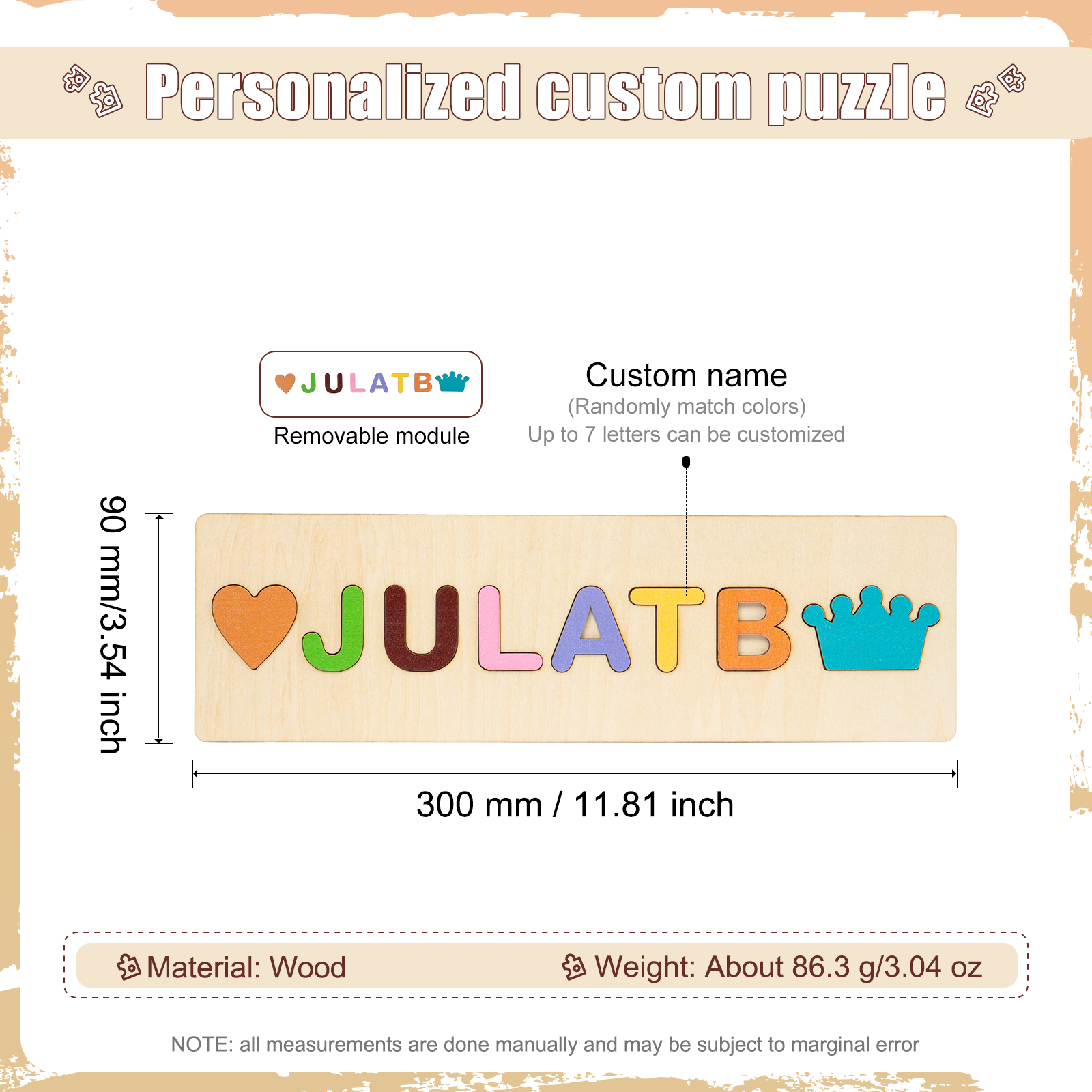 Puzzles bébé nom personnalisé Jouets d'apprentissage précoce