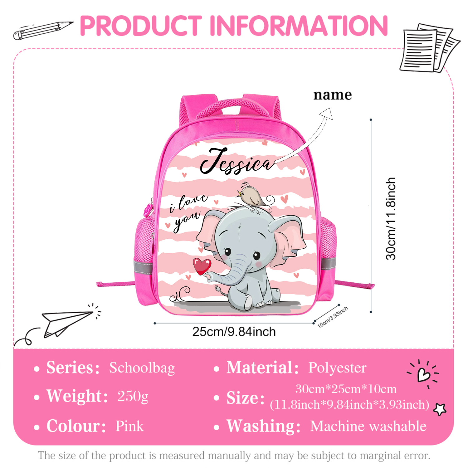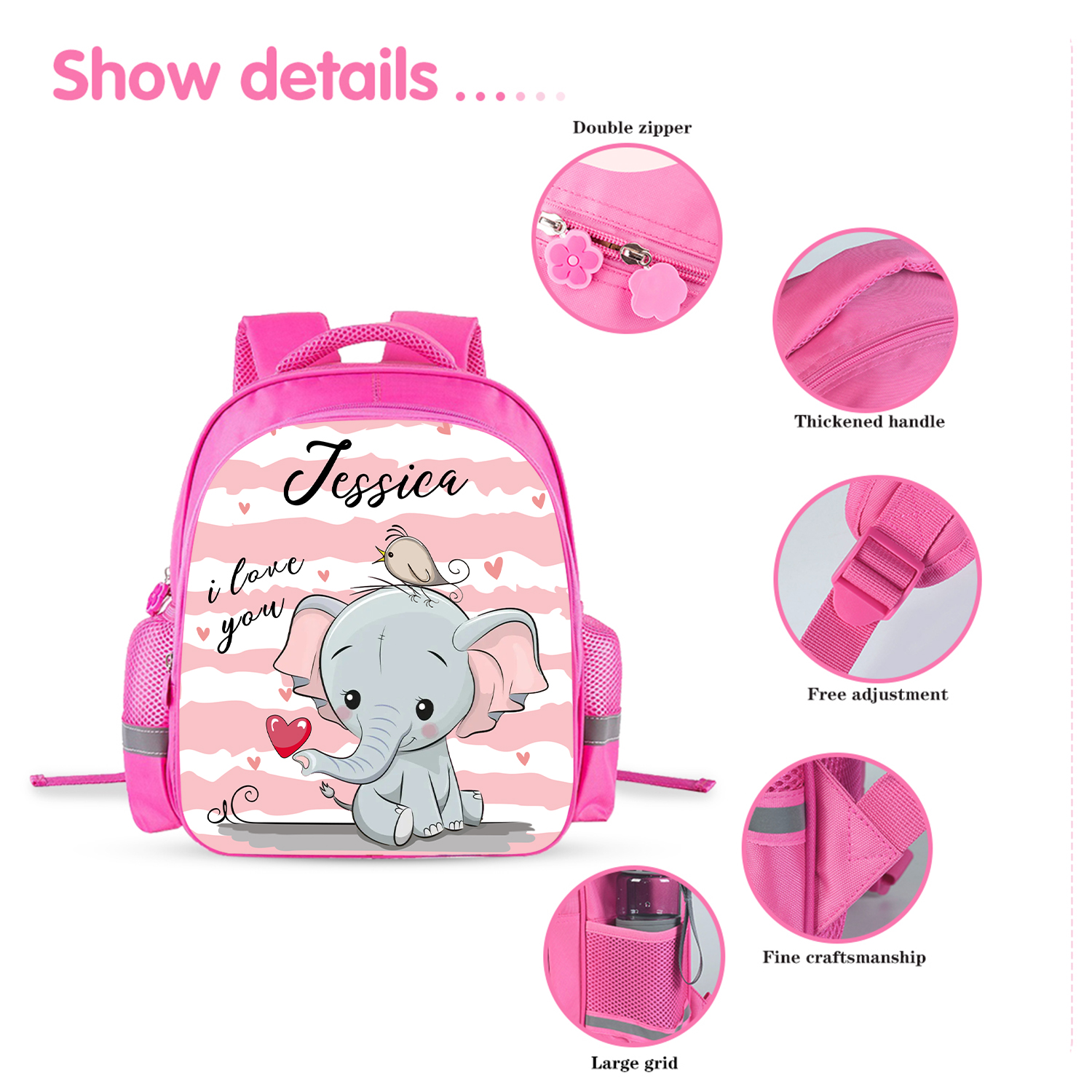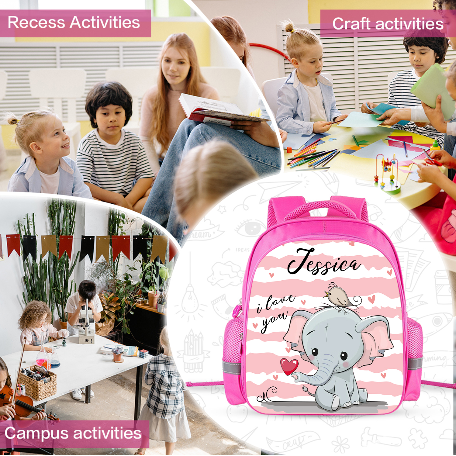 Sac à Dos Éléphant pour Enfant 1 Prénom Personnalisé Sac maternelle