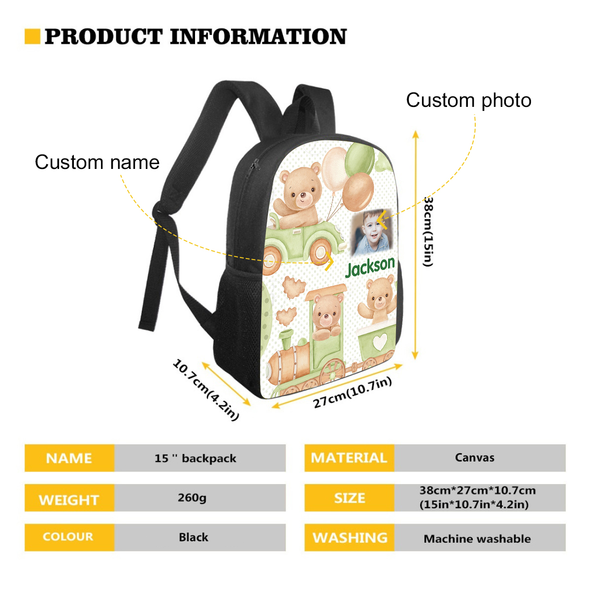 Sac à Dos Ours pour Enfant 1 Prénom Personnalisé avec Photo Sac maternelle