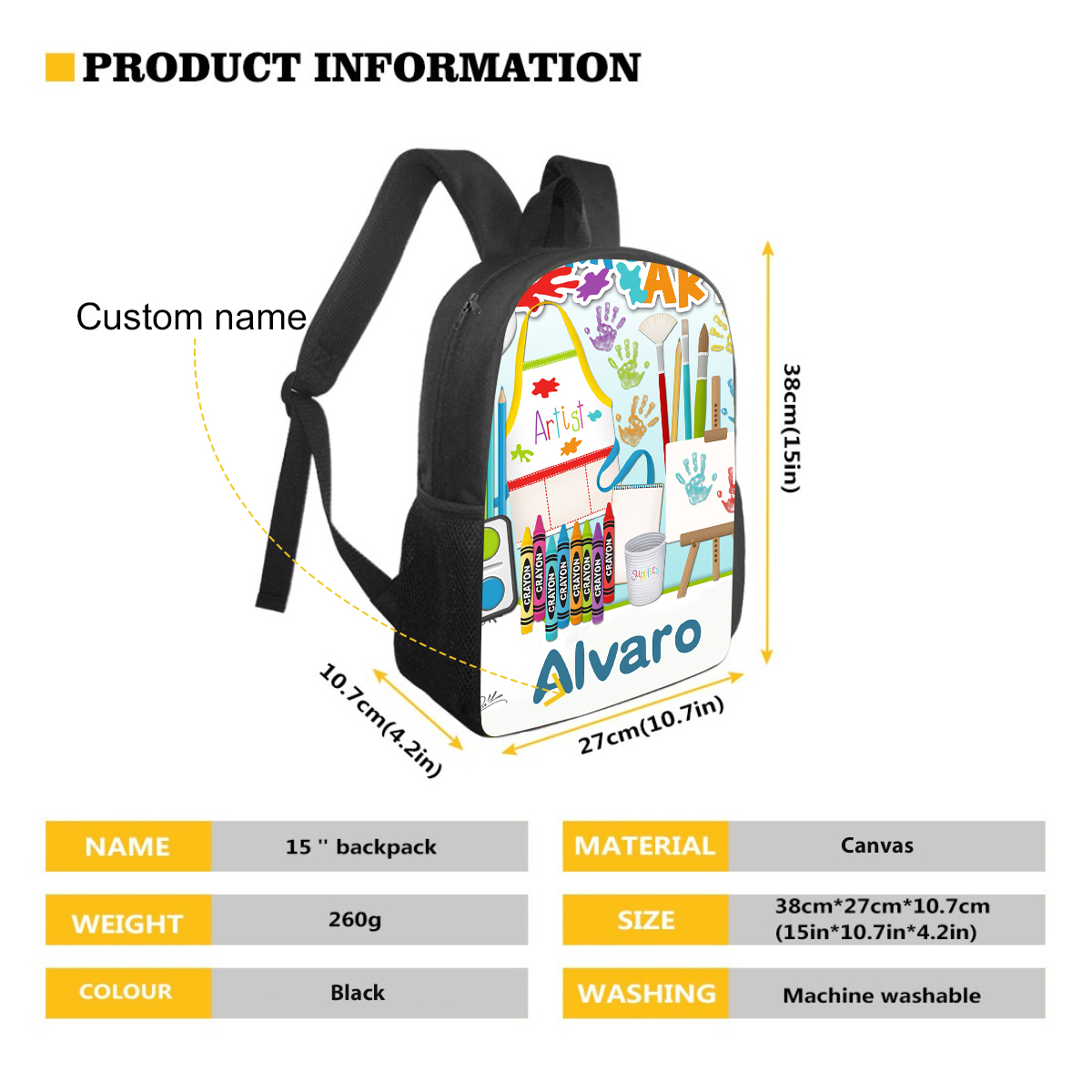 Sac à Dos pour Enfant 1 Prénom Personnalisé Sac maternelle