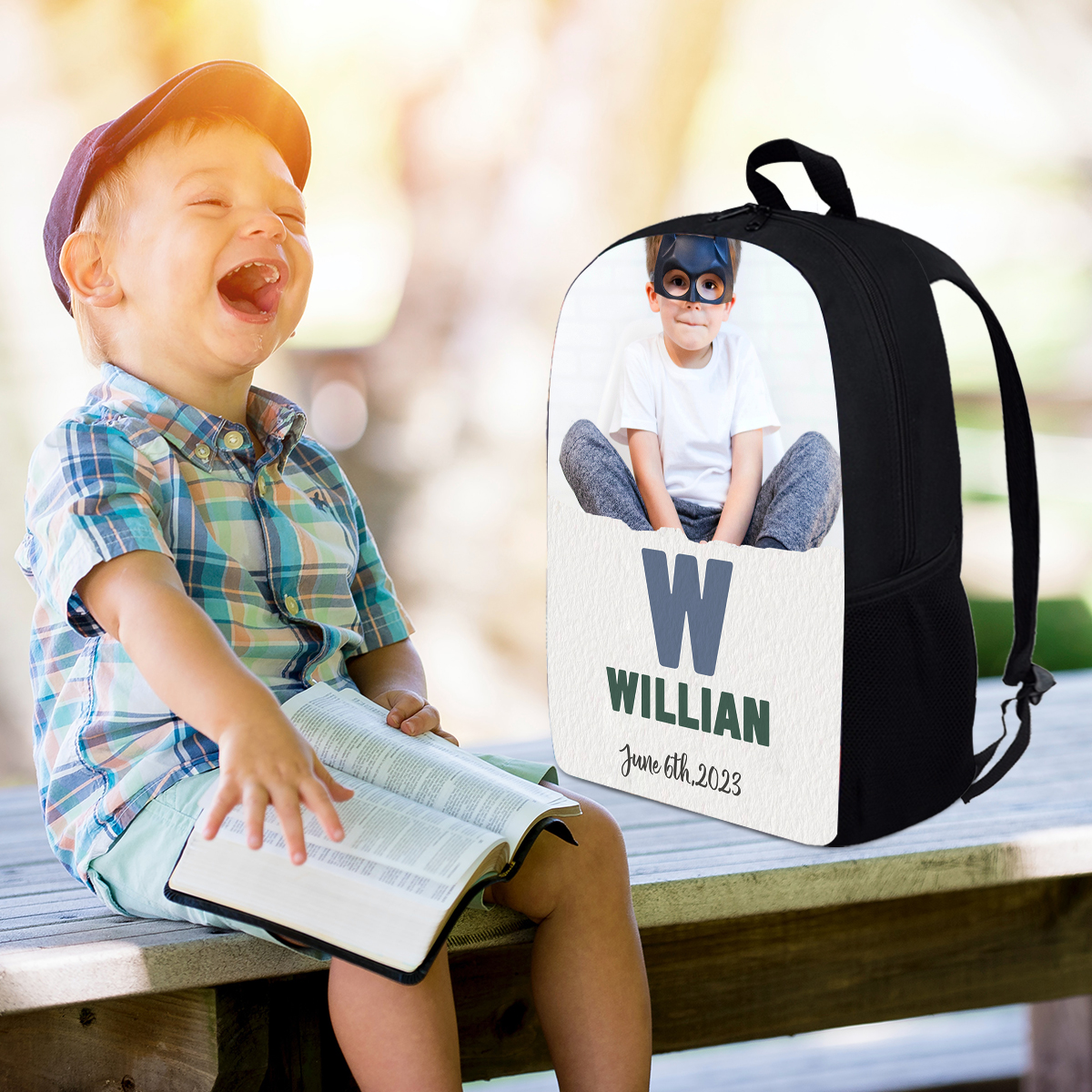 Sac à Dos pour Enfant 1 Prénom Personnalisé avec Photo et Lettre et Date Sac maternelle