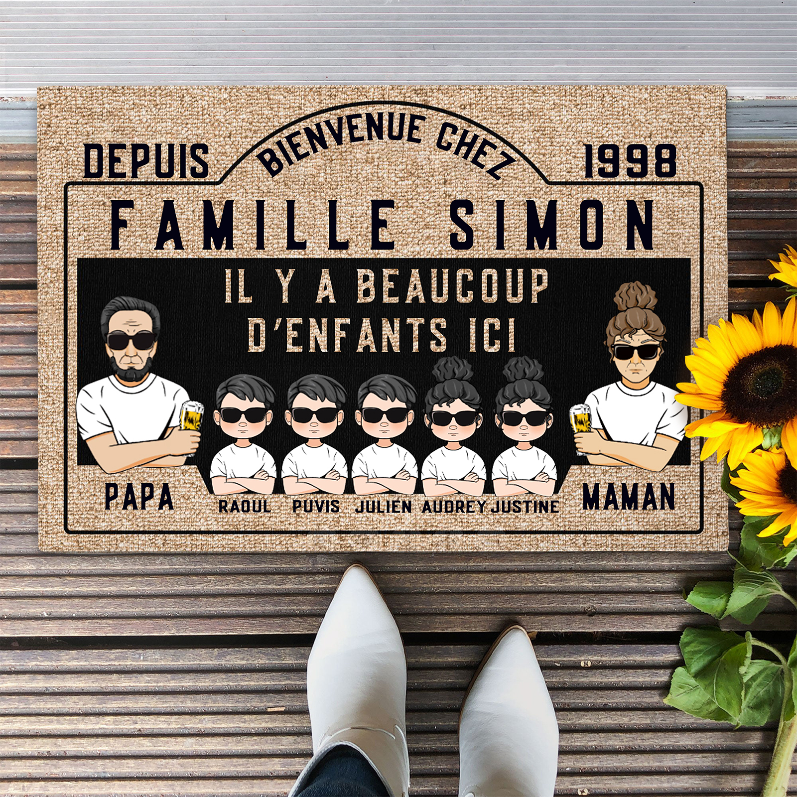 Tapis D'Entrée - Paillasson 5 Prénoms Personnalisés avec Texte et Années