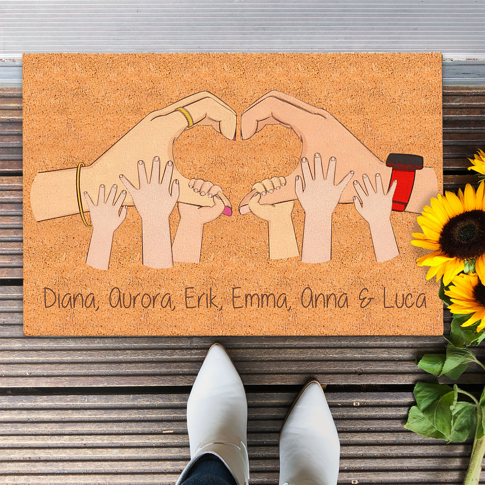 Tapis D'Entrée - Paillasson La Main Dans La Main Texte Personnalisé