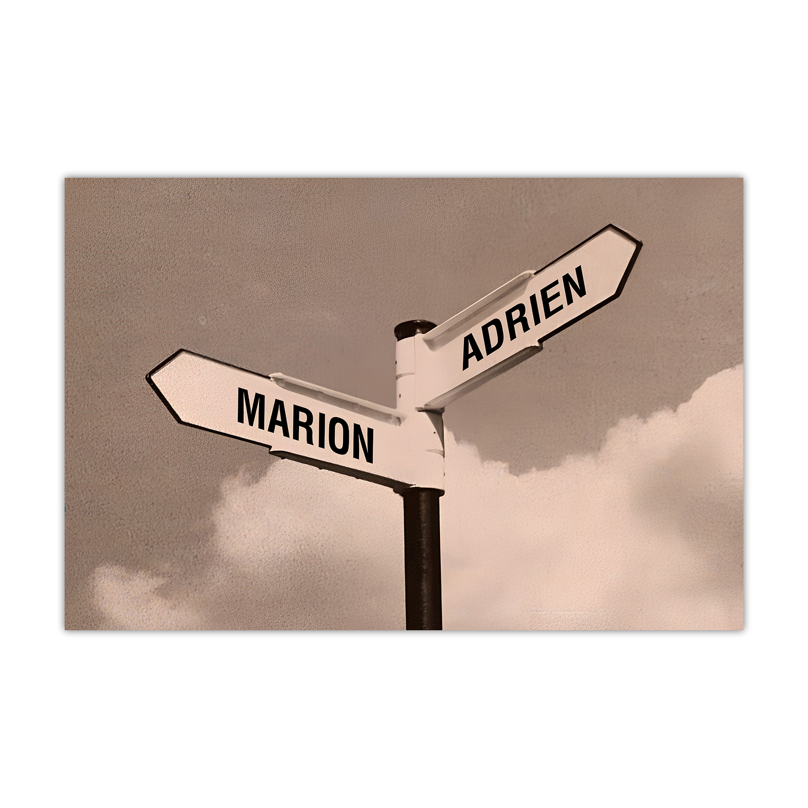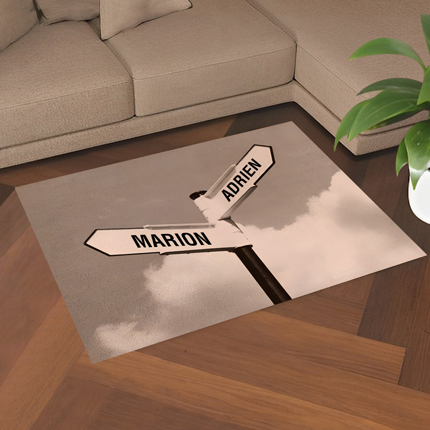 Tapis D'Entrée - Paillasson Poteau Indicateur 2 Prénoms Personnalisés pour Couple