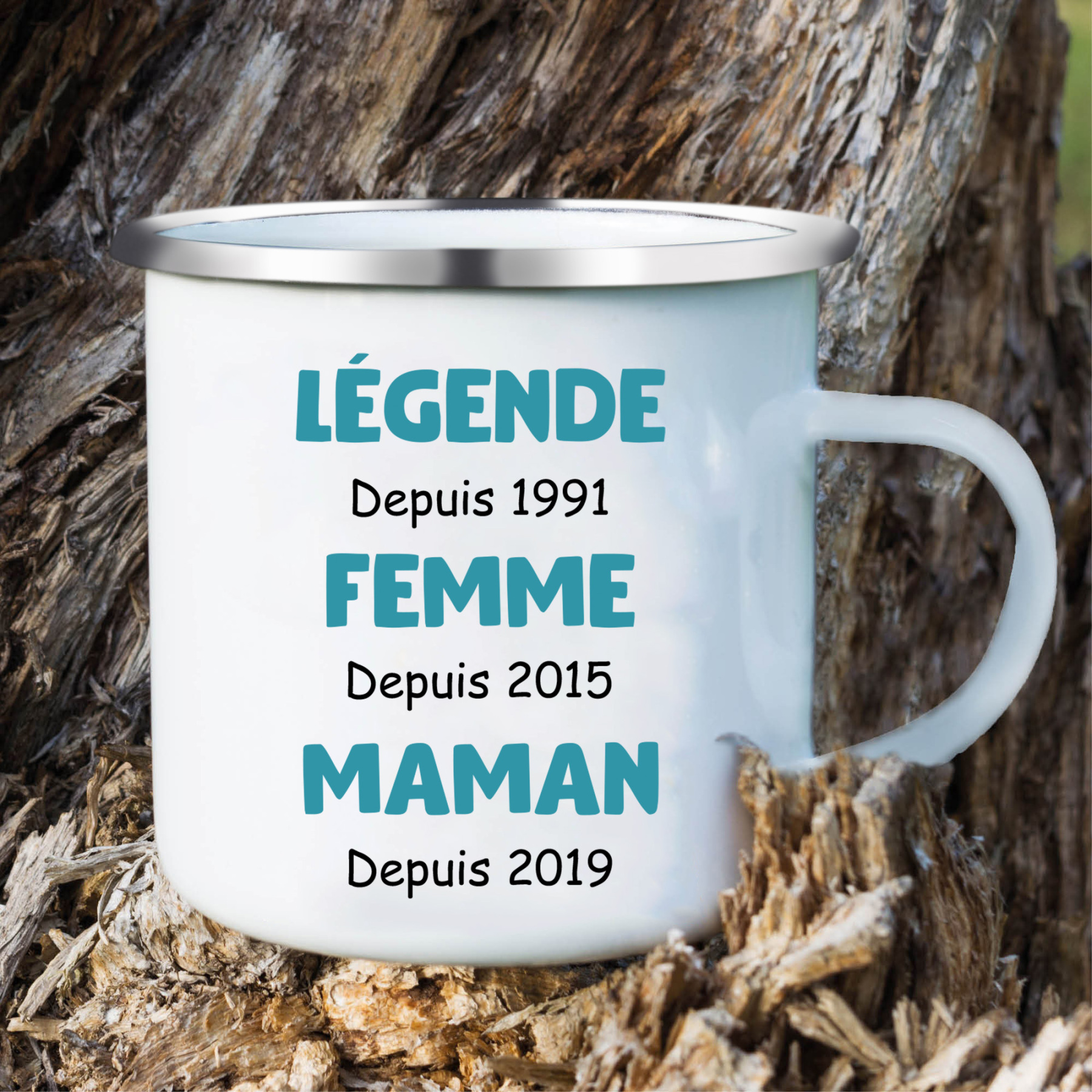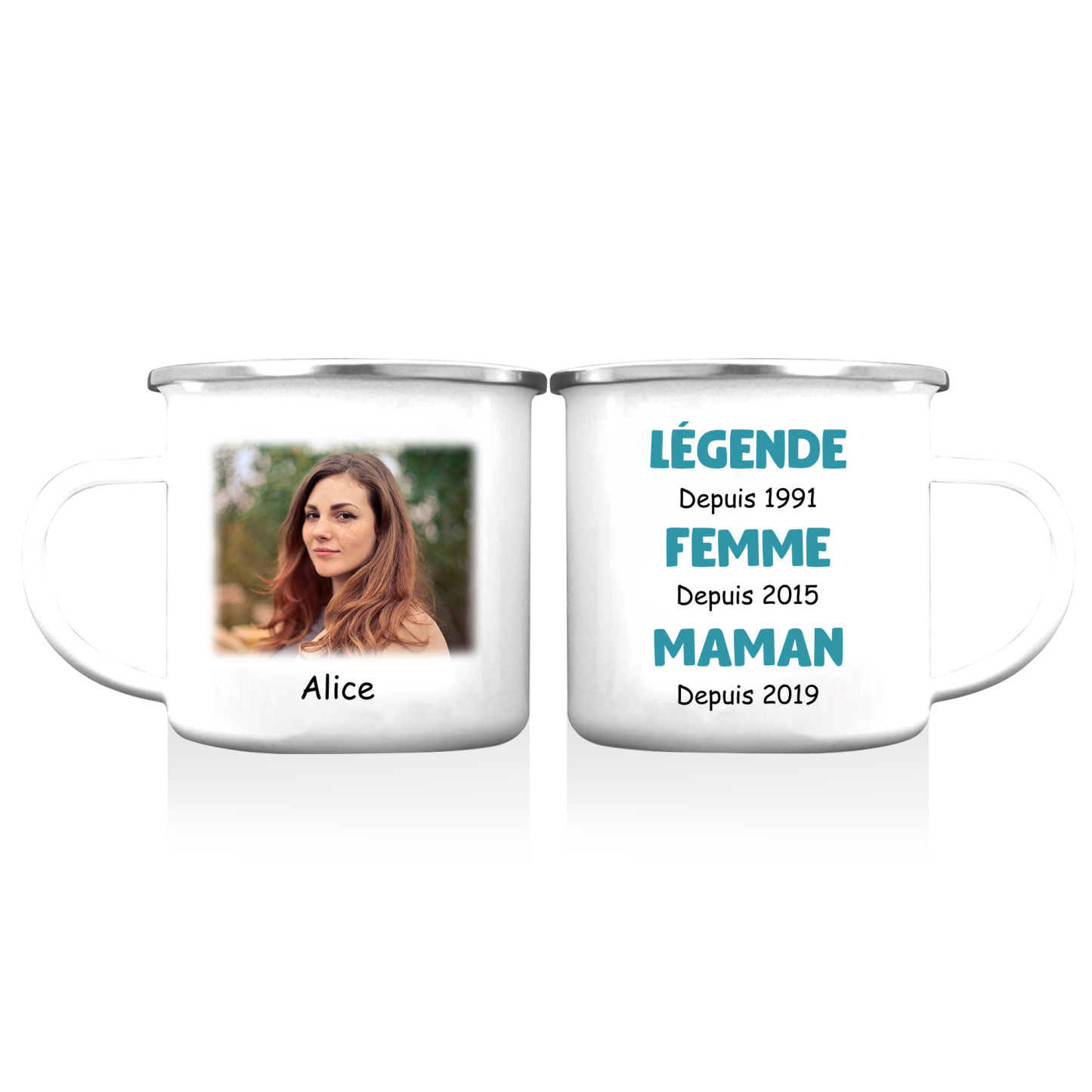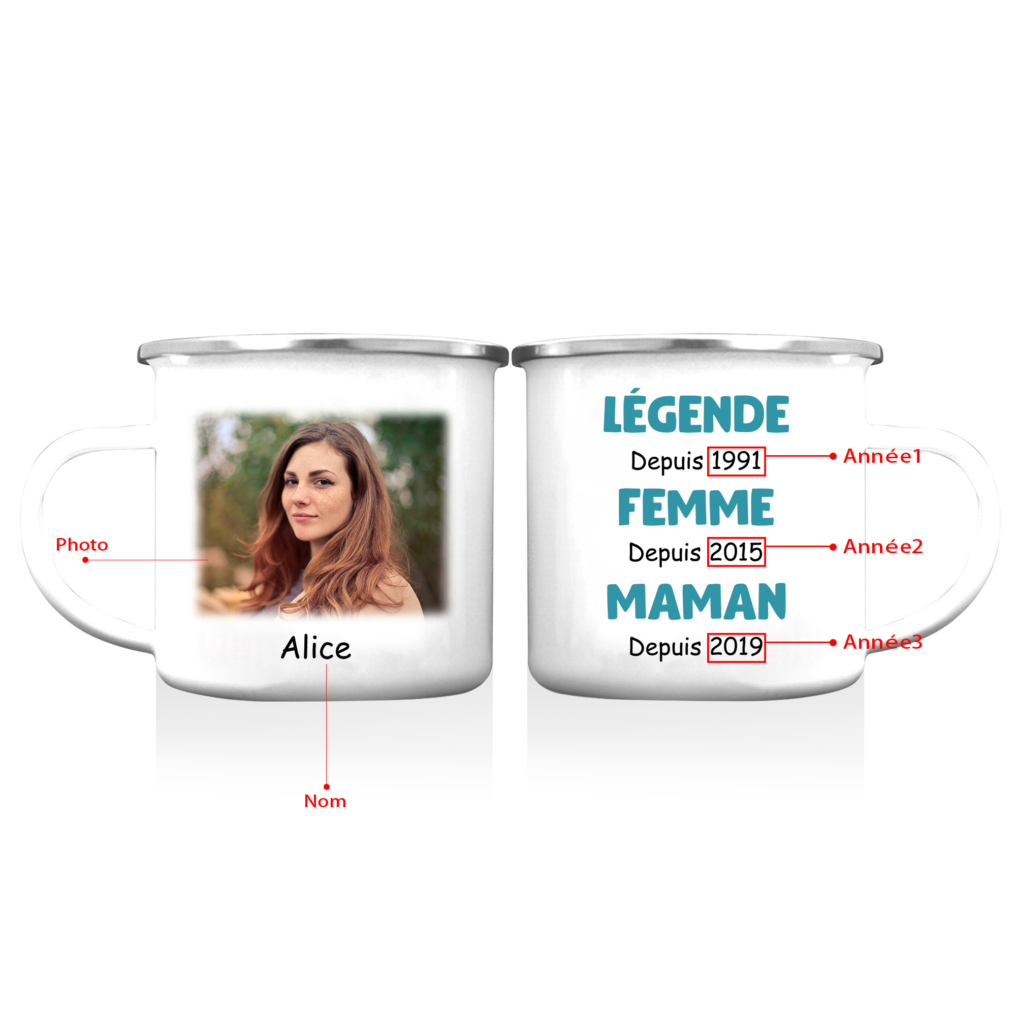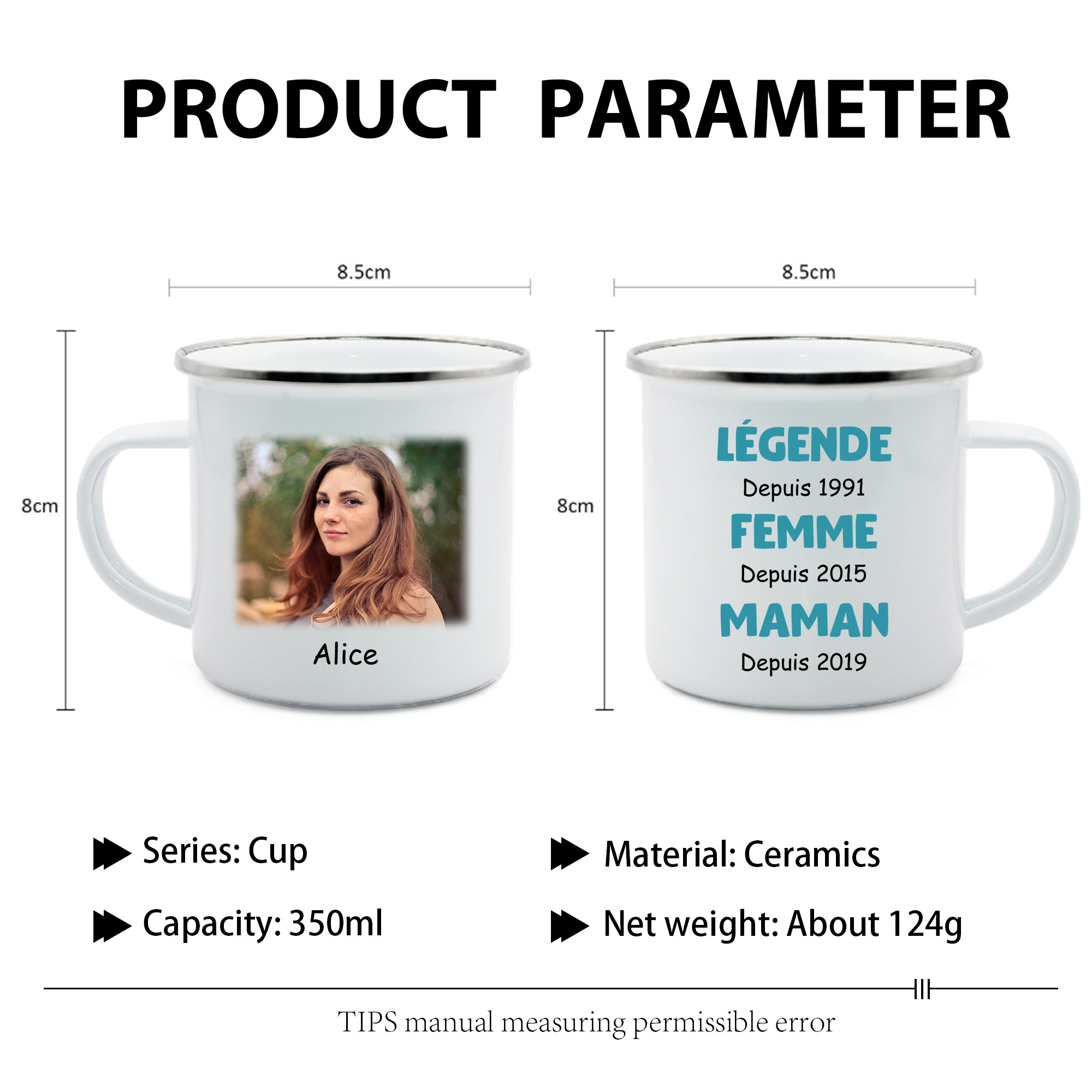 Tasse émaillée 1 Prénom et Photo Personnalisés avec 3 Années cadeau pour Maman
